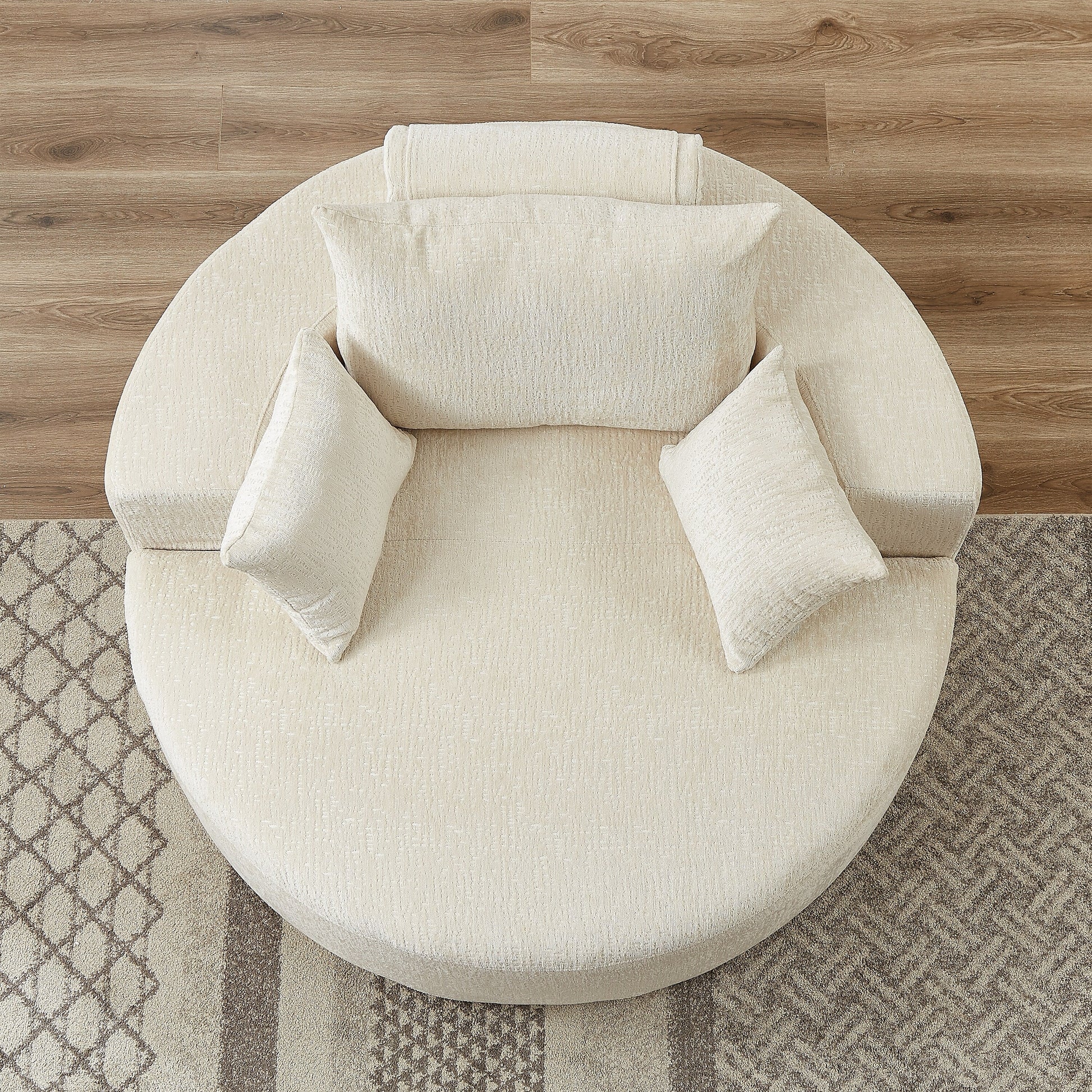 Canapé-lit simple rond en chenille beige avec coussin de dossier