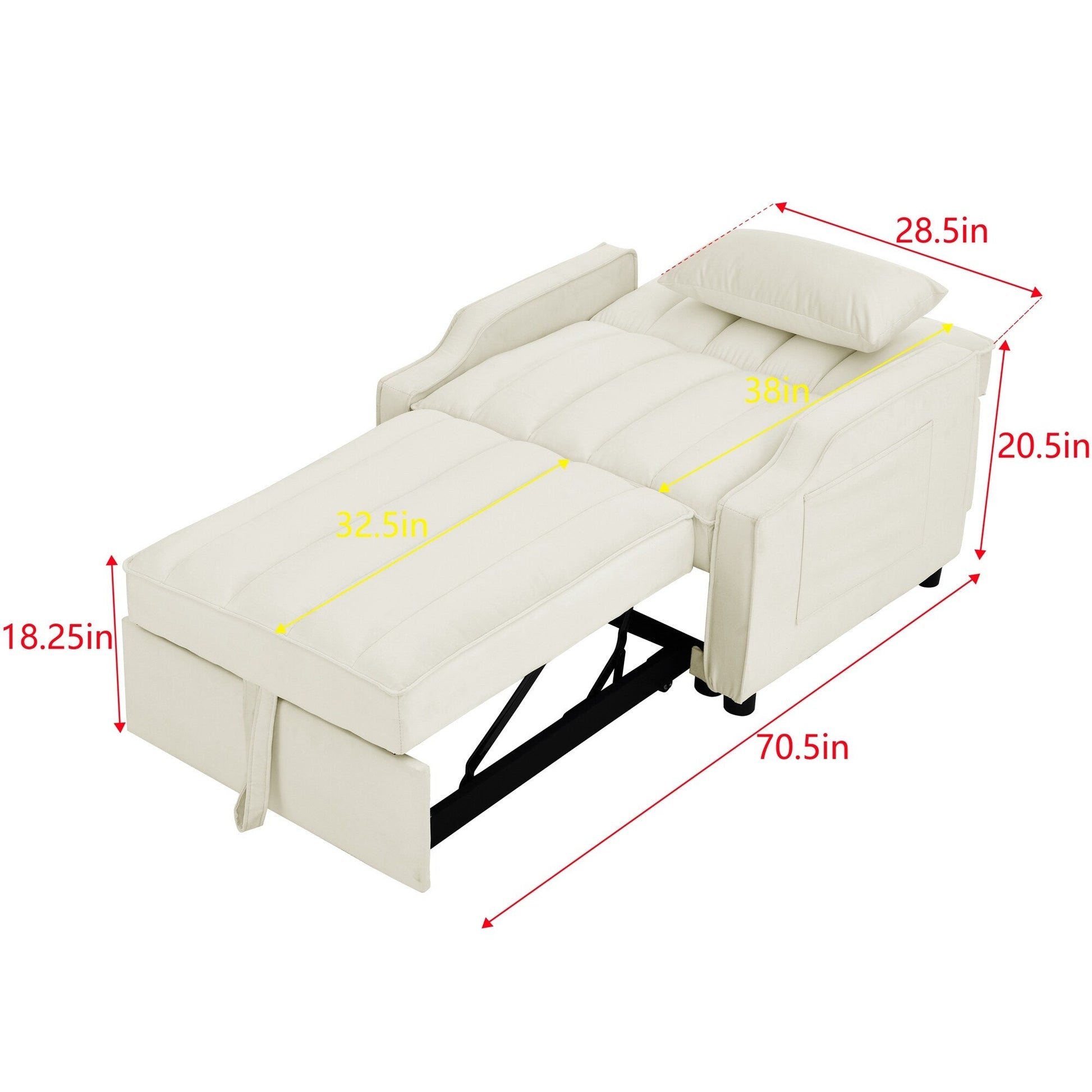 Canapé-lit simple convertible en velours beige 35,5 avec lit gigogne, poche de rangement et oreillers
