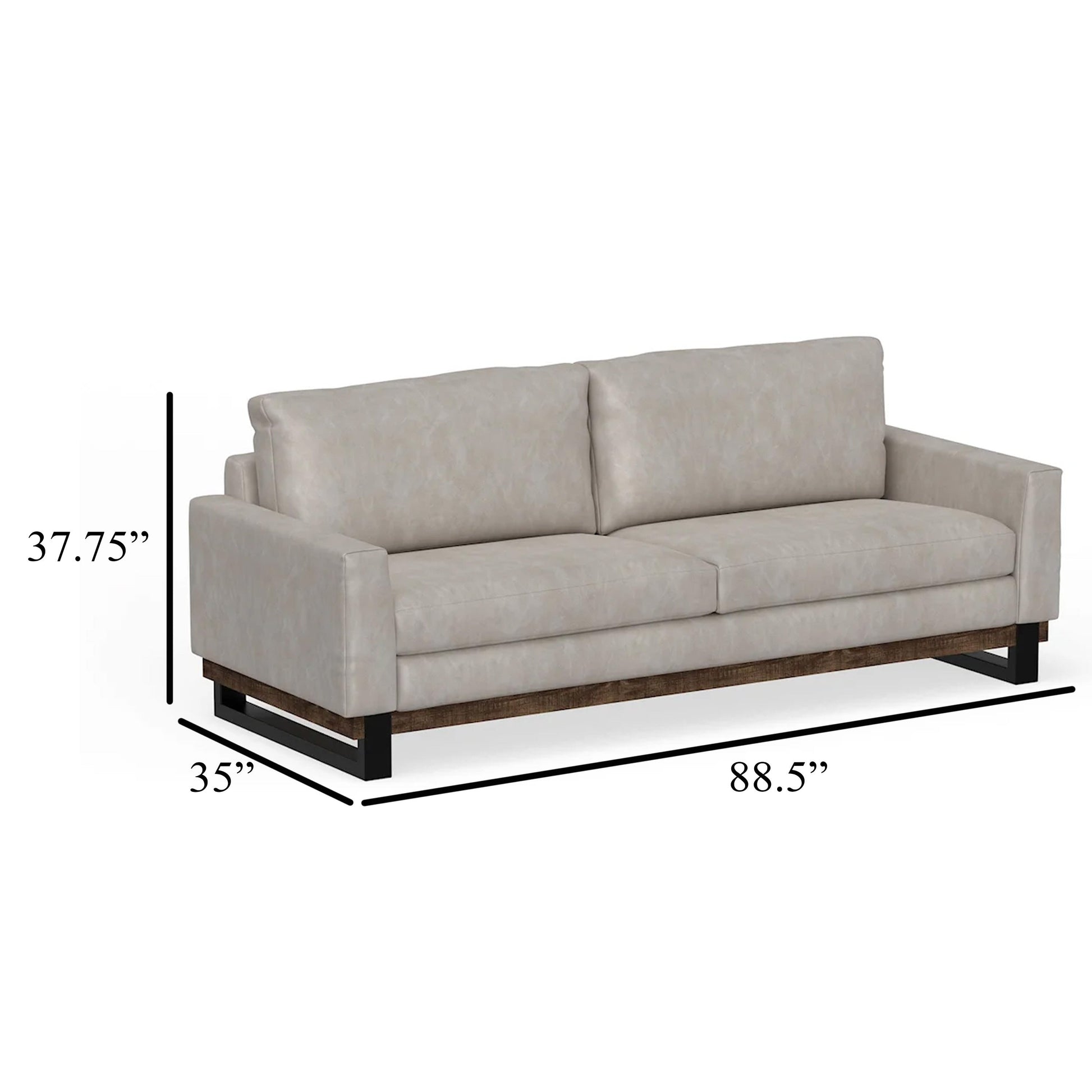 Canapé Bery, piètement moderne en pin massif, similicuir blanc ivoire doux