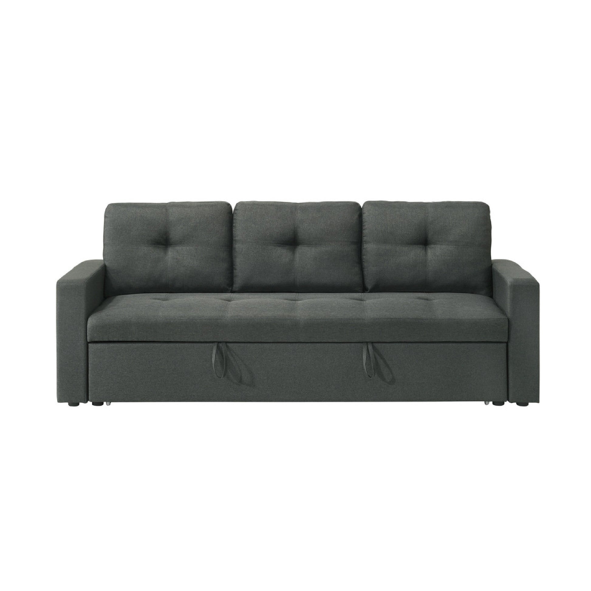 Canapé-lit gigogne Biry, coussins capitonnés, tissu gris foncé