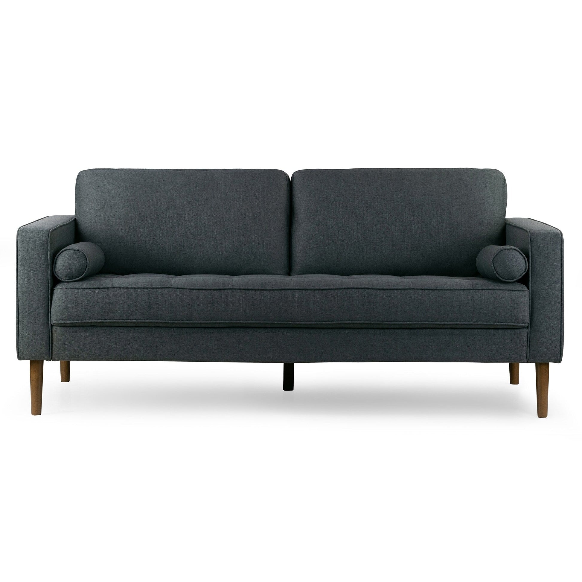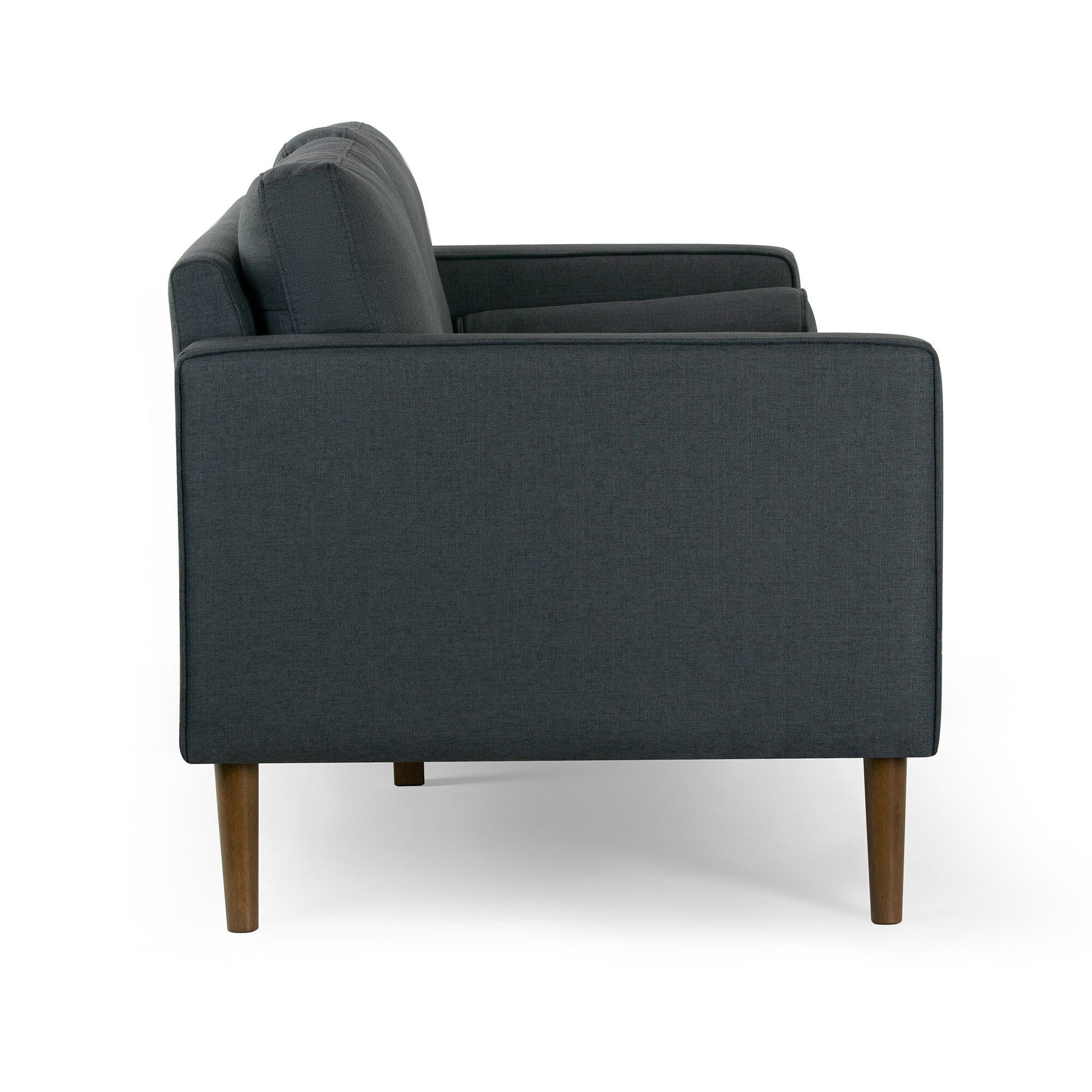 Profitez du confort et de la durabilité de notre canapé 2 places, doté d'un revêtement en sergé capitonné dans un gris foncé sophistiqué. Construit avec une structure et des pieds en noyer massif, il offre un soutien exceptionnel. Ce canapé est livré avec des coussins assortis pour plus de style et de confort. Dimensions du produit : Dimensions hors tout : L 73,75 pi x P 32,5 pi x H 33 pi Poids : 75 lb Assise : L 63,5 pi x P 22,5 pi x H 18 pi Autres dimensions : Dimensions du dossier : L 63,5 pi x P 7,5 pi x H 16,5 pi Dimensions des accoudoirs : L 4,75 pi x P 32 pi x H 25,5 pi Coussins : L 5 pi x P 20 pi x H 5 pi Hauteur des pieds : H 8 pi.