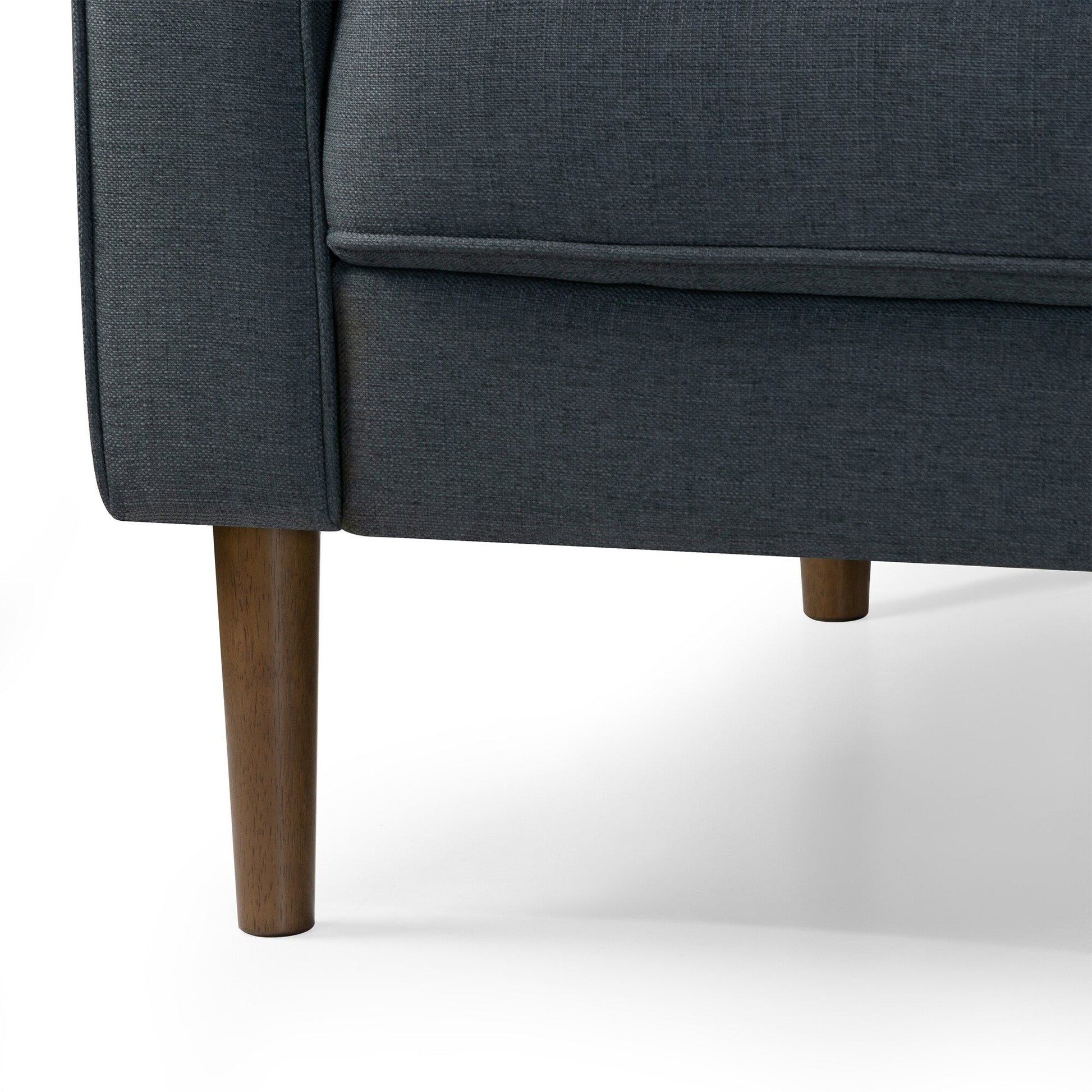 Canapé Bisera en tissu sergé gris foncé avec pieds en bois de noyer