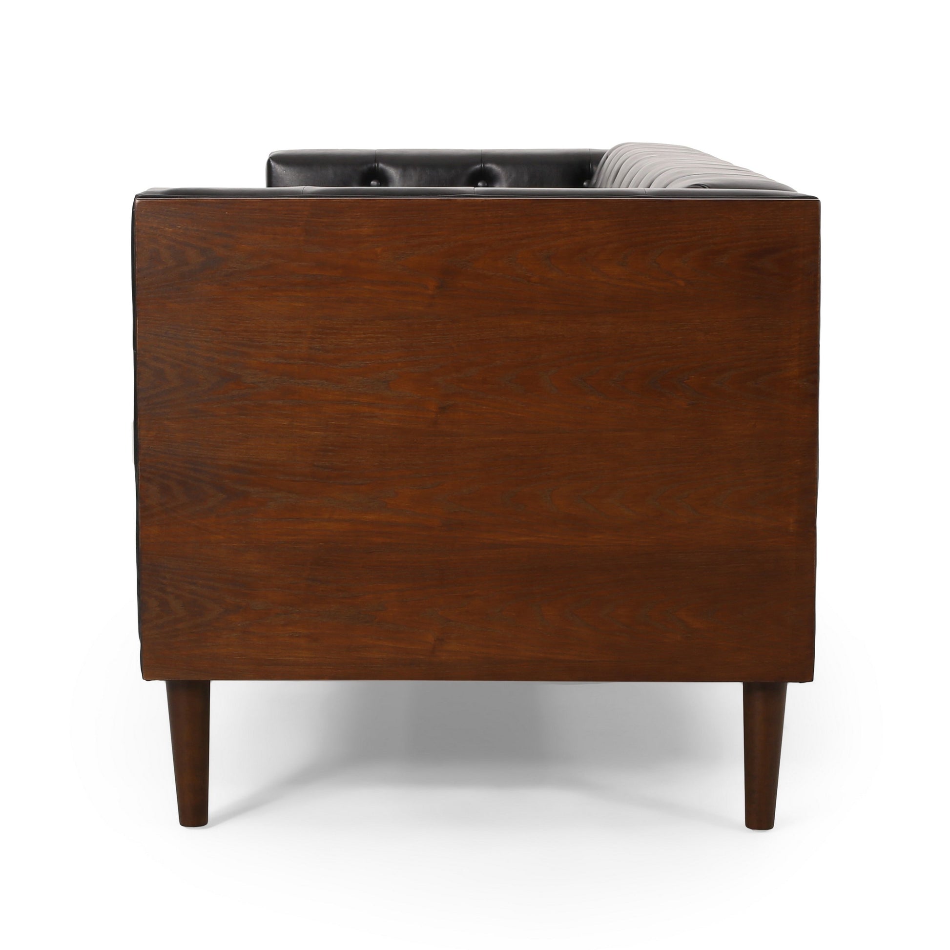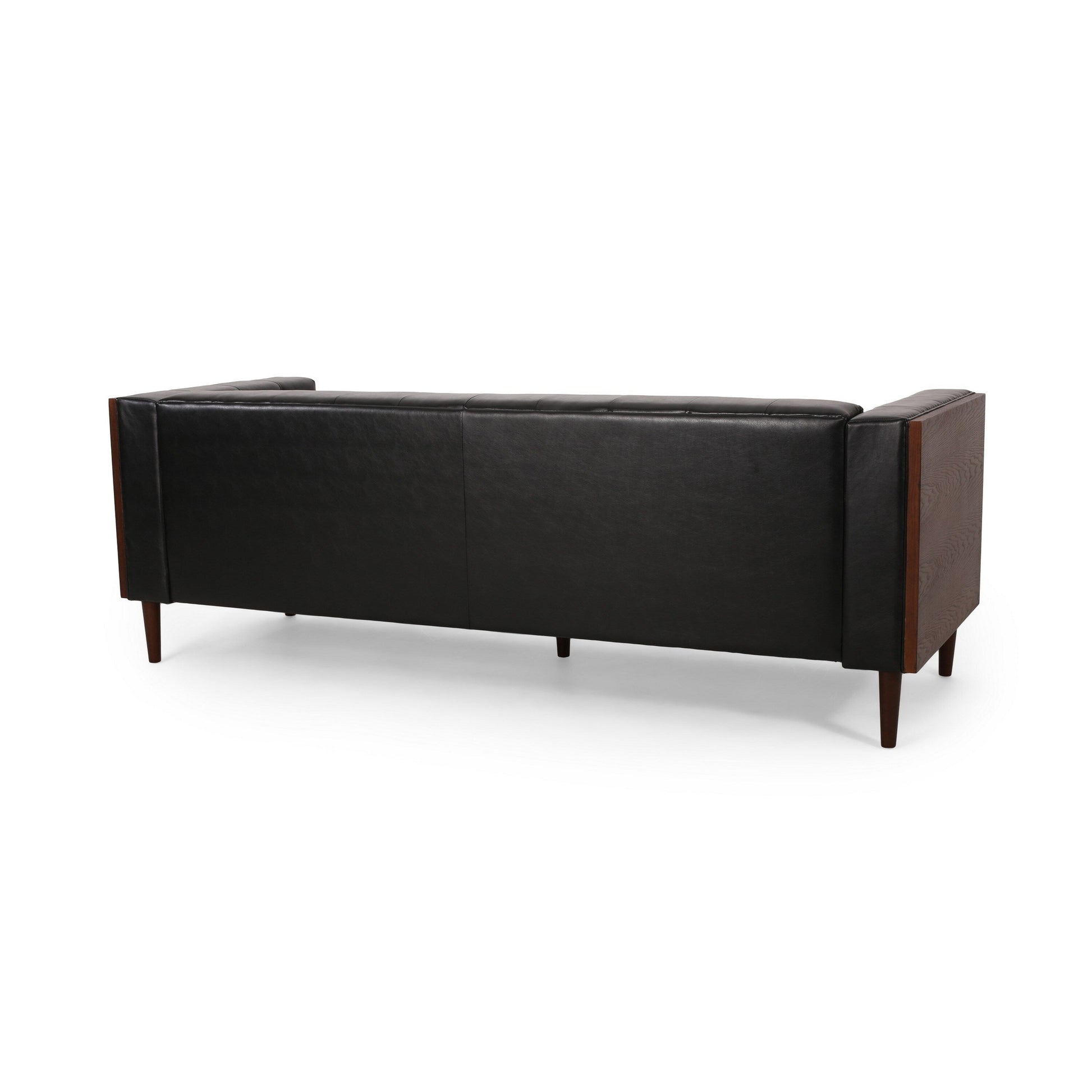 Canapé Biya, 90 pouces, Chesterfield capitonné en similicuir noir, 2 coussins