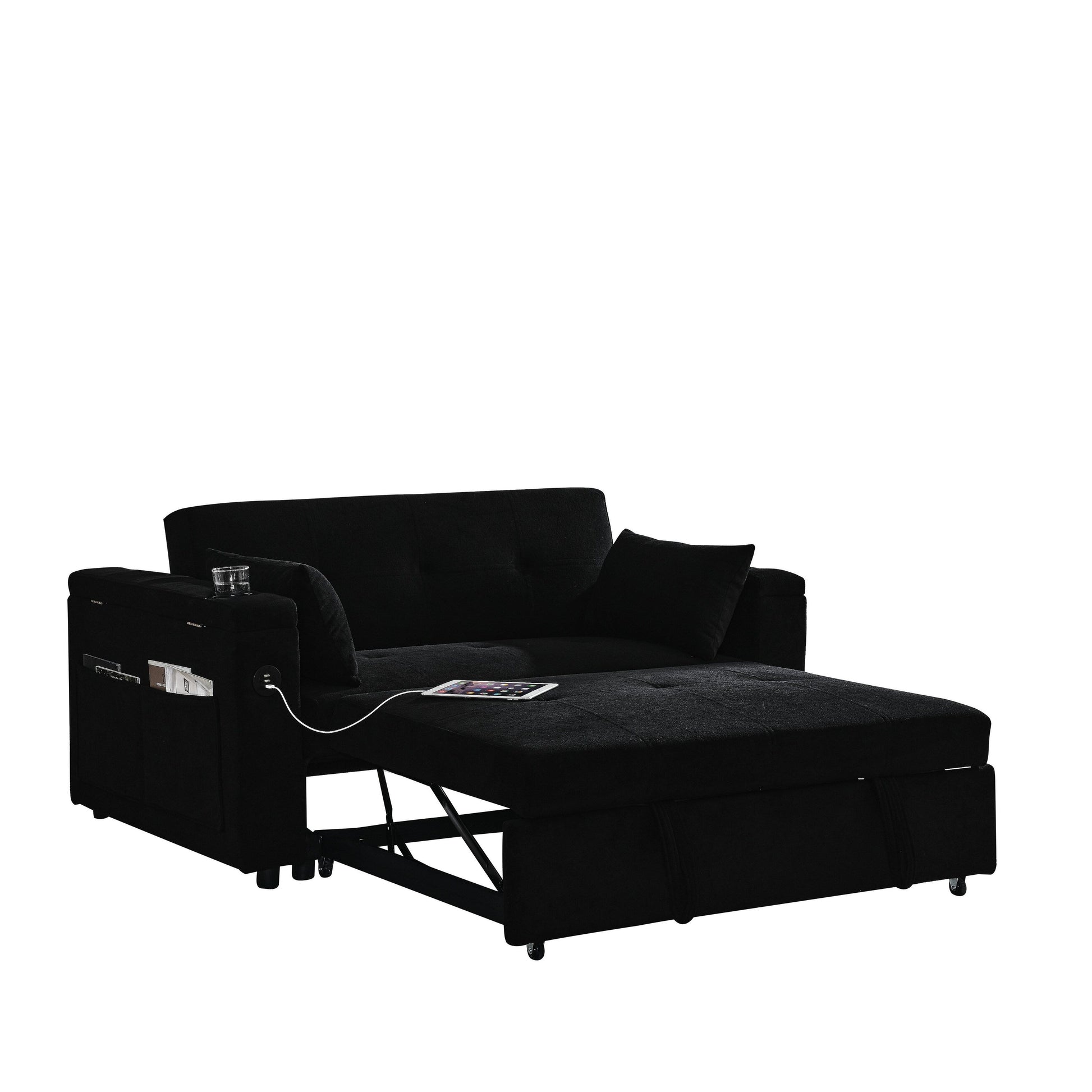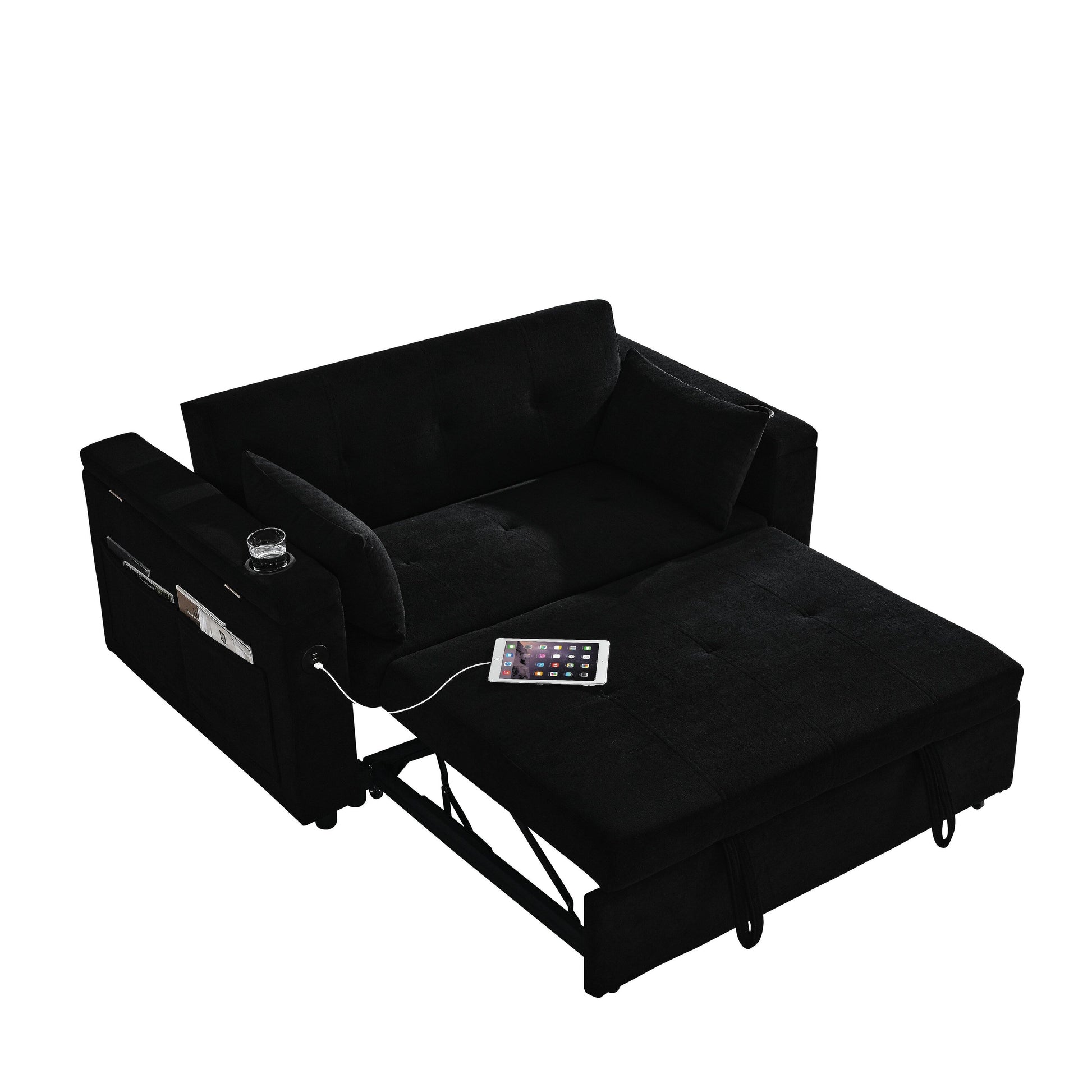 Canapé deux places en tissu noir 54'' : lit gigogne, rangement d'accoudoir et port de chargement USB