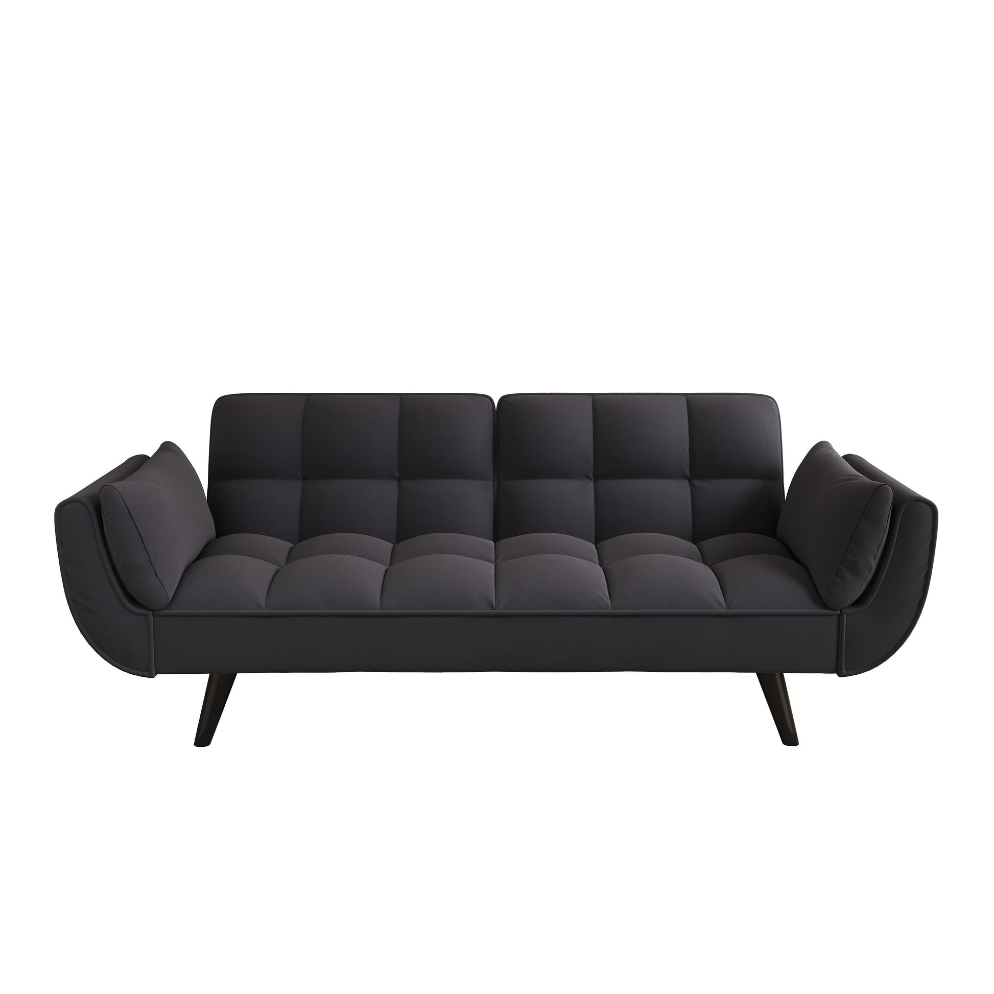 Canapé convertible 2 places en velours noir 57 avec dossier réglable, accoudoirs et rembourrage moelleux pour petits espaces