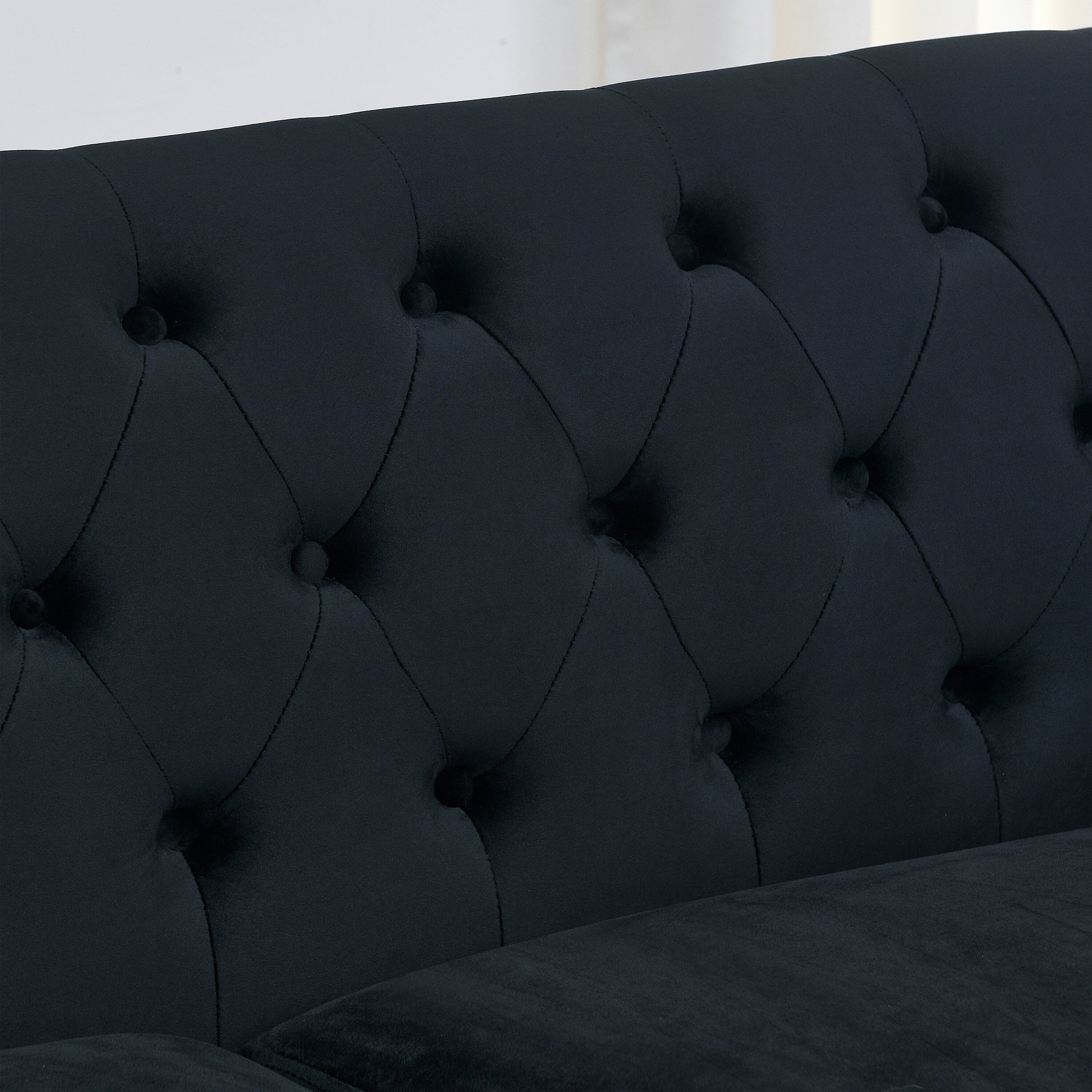 Canapé 2 places en velours noir moderne de 59 pouces avec dossier capitonné, accoudoirs cloutés et 2 coussins