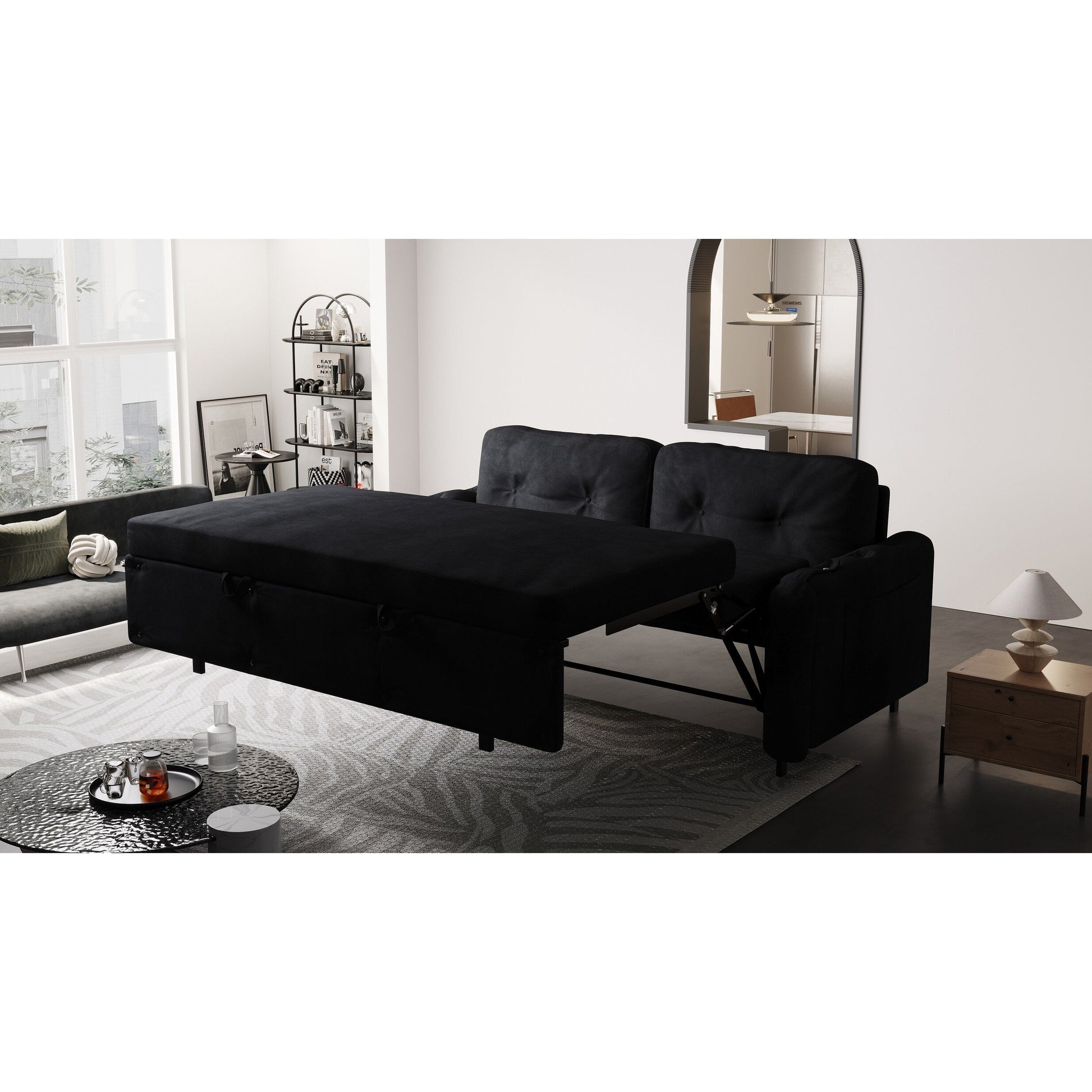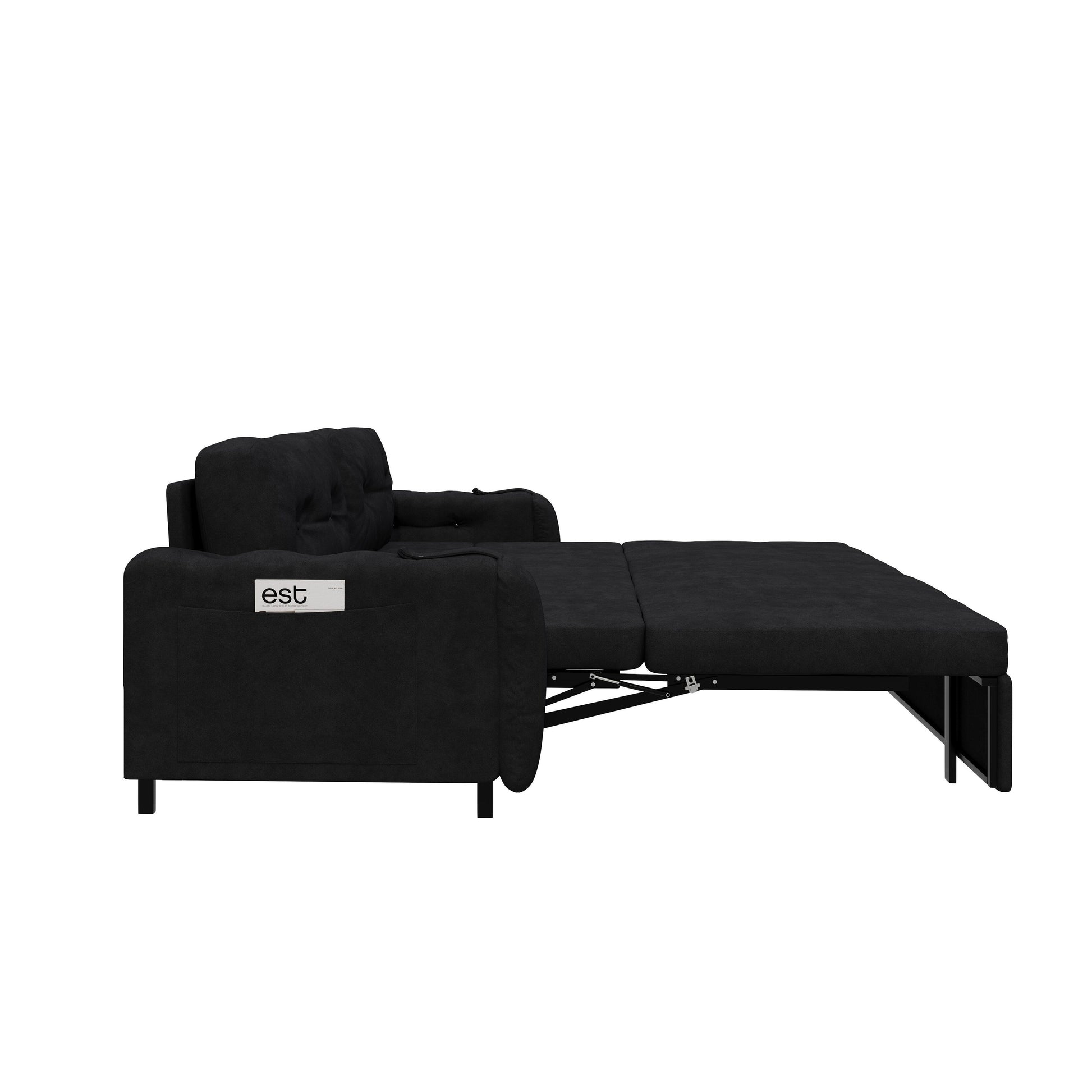 Canapé-lit convertible en velours noir 66,2 pouces avec système hydraulique et rangement, 2 coussins moelleux pour le salon