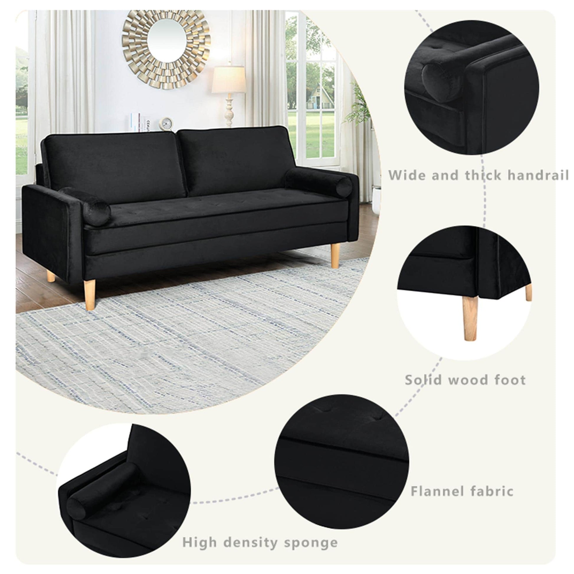 Canapé 3 places noir 70 avec coussin de remplissage en coton élastique et poupée de haute qualité pour le salon