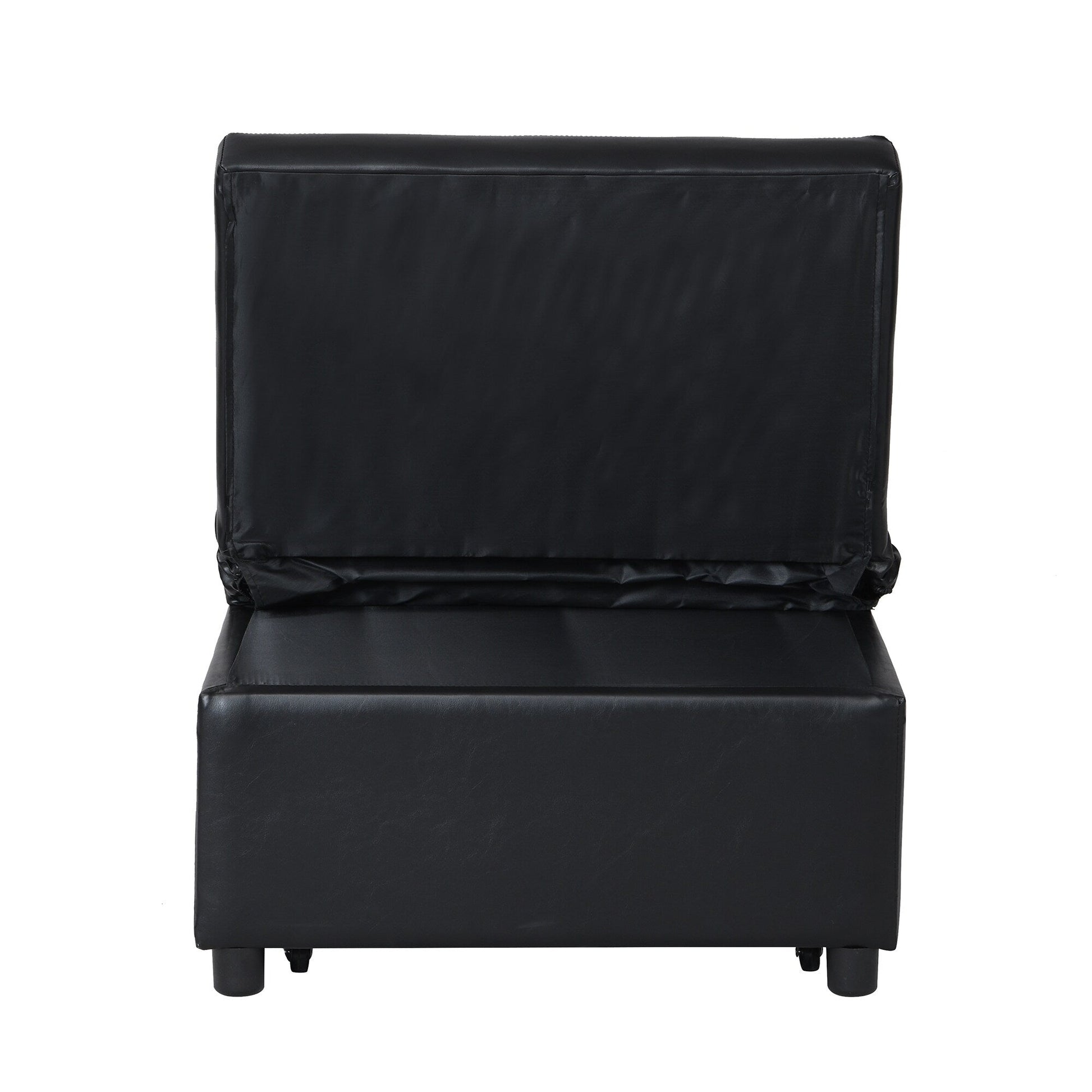 Canapé-lit simple capitonné en similicuir noir 70,9 avec coussins pour le salon