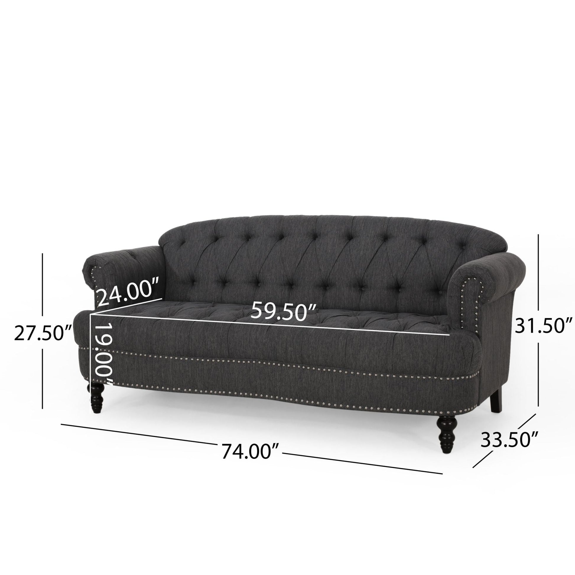 Canapé 3 places en tissu noir 74 pouces avec détails rivetés, revêtement durable et sièges spacieux pour le salon