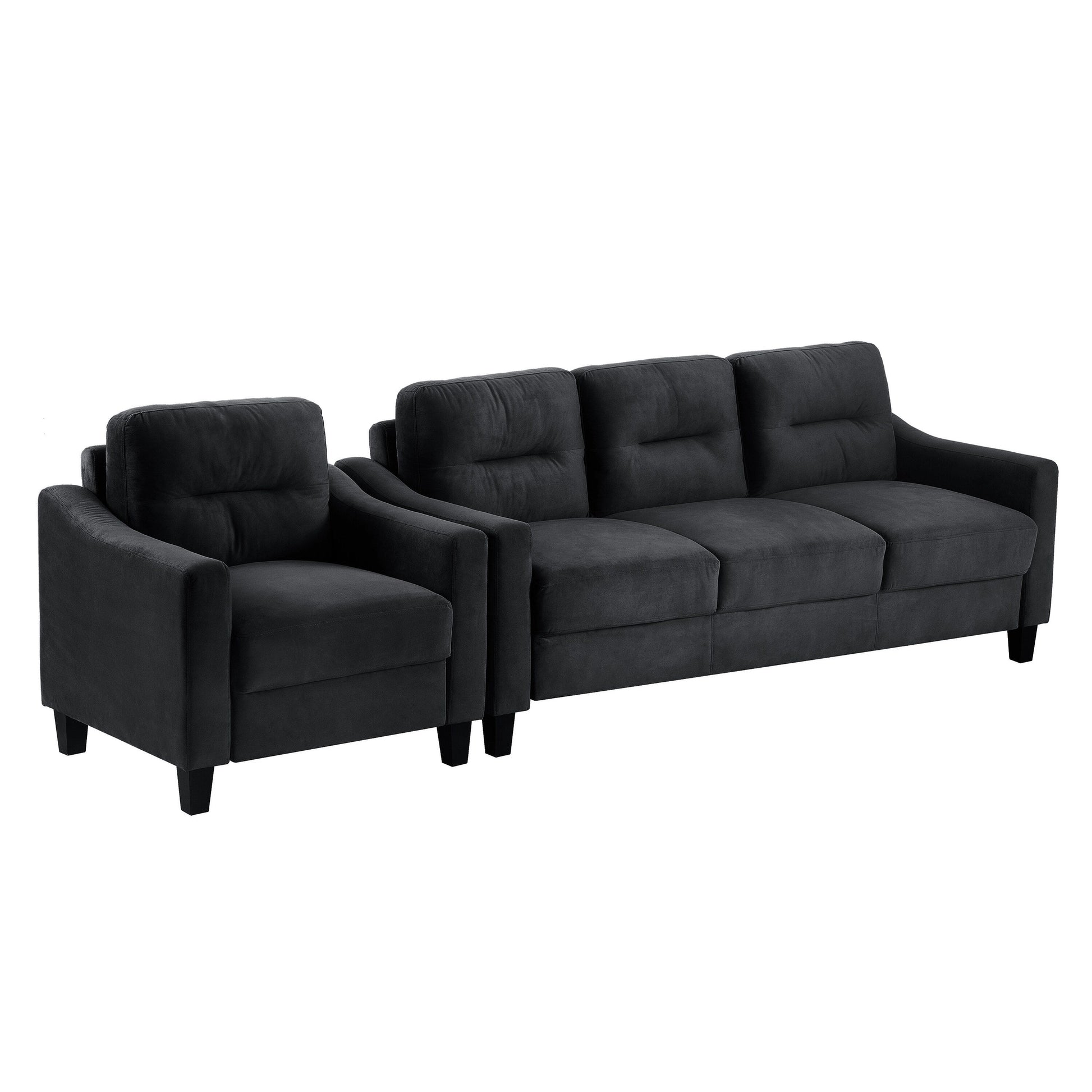 Canapé 3 places en velours noir 76,7 avec structure en bois massif et mousse hautement élastique pour le salon