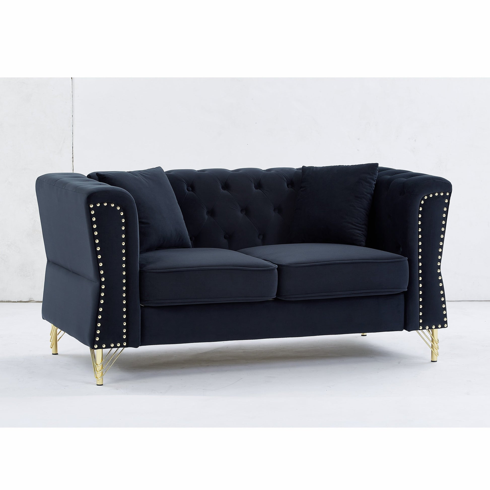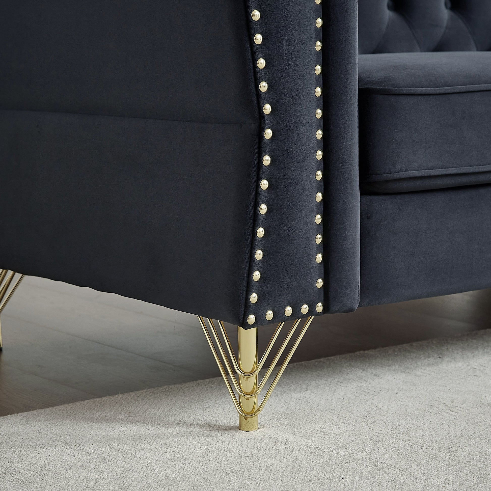 Canapé 3 places en velours noir 81,8 avec canapé capitonné et pieds en métal pour le salon