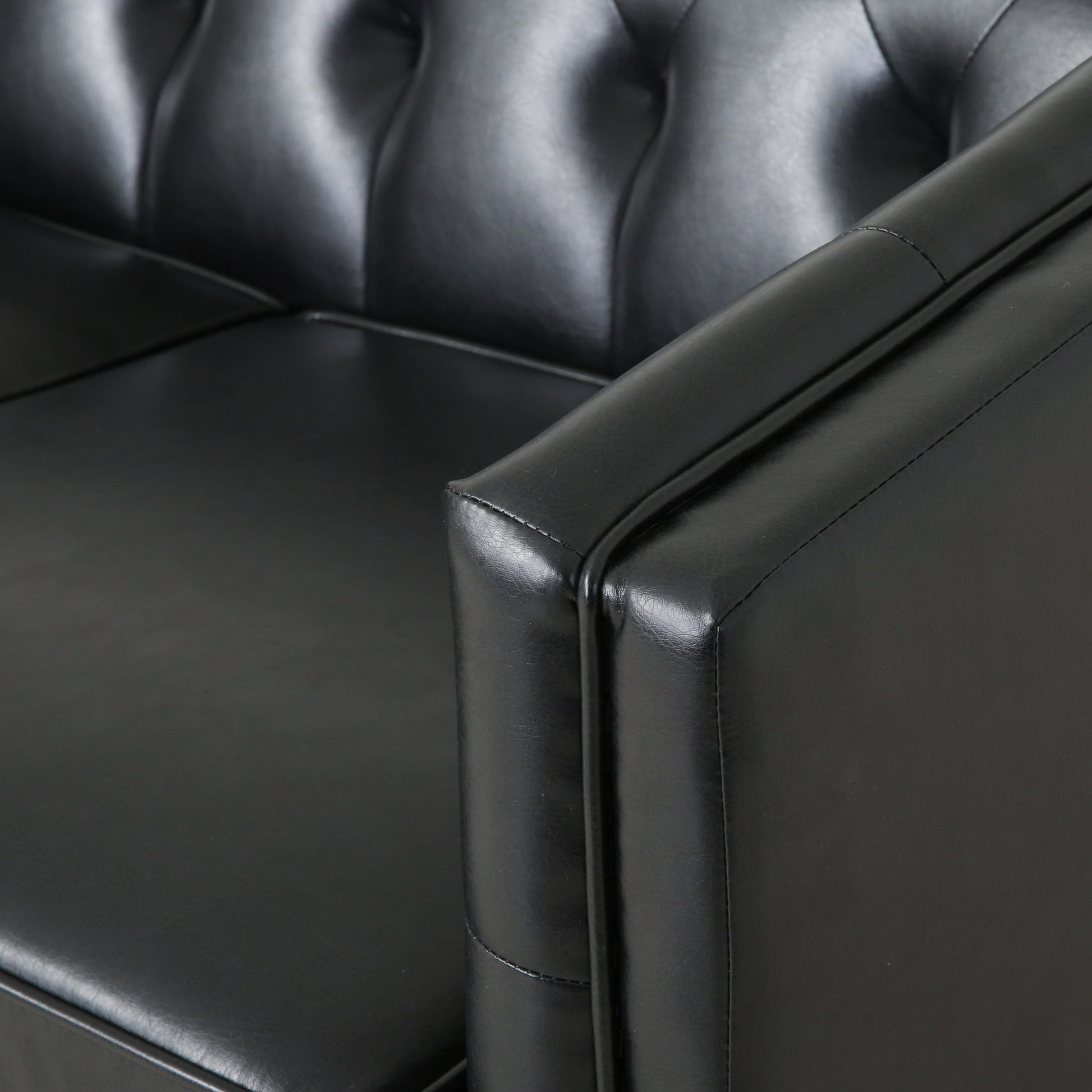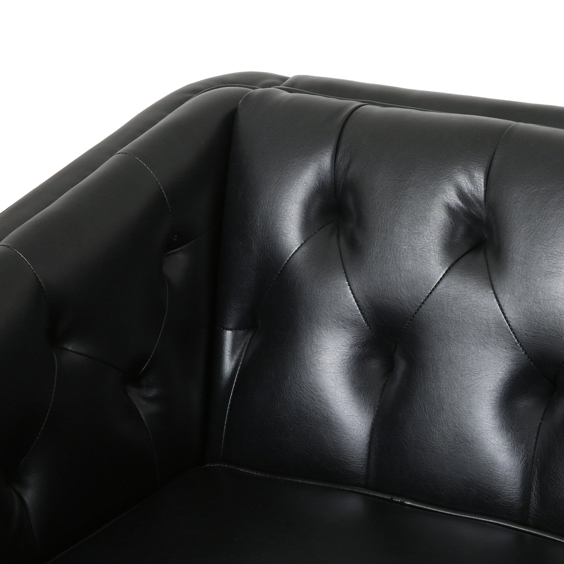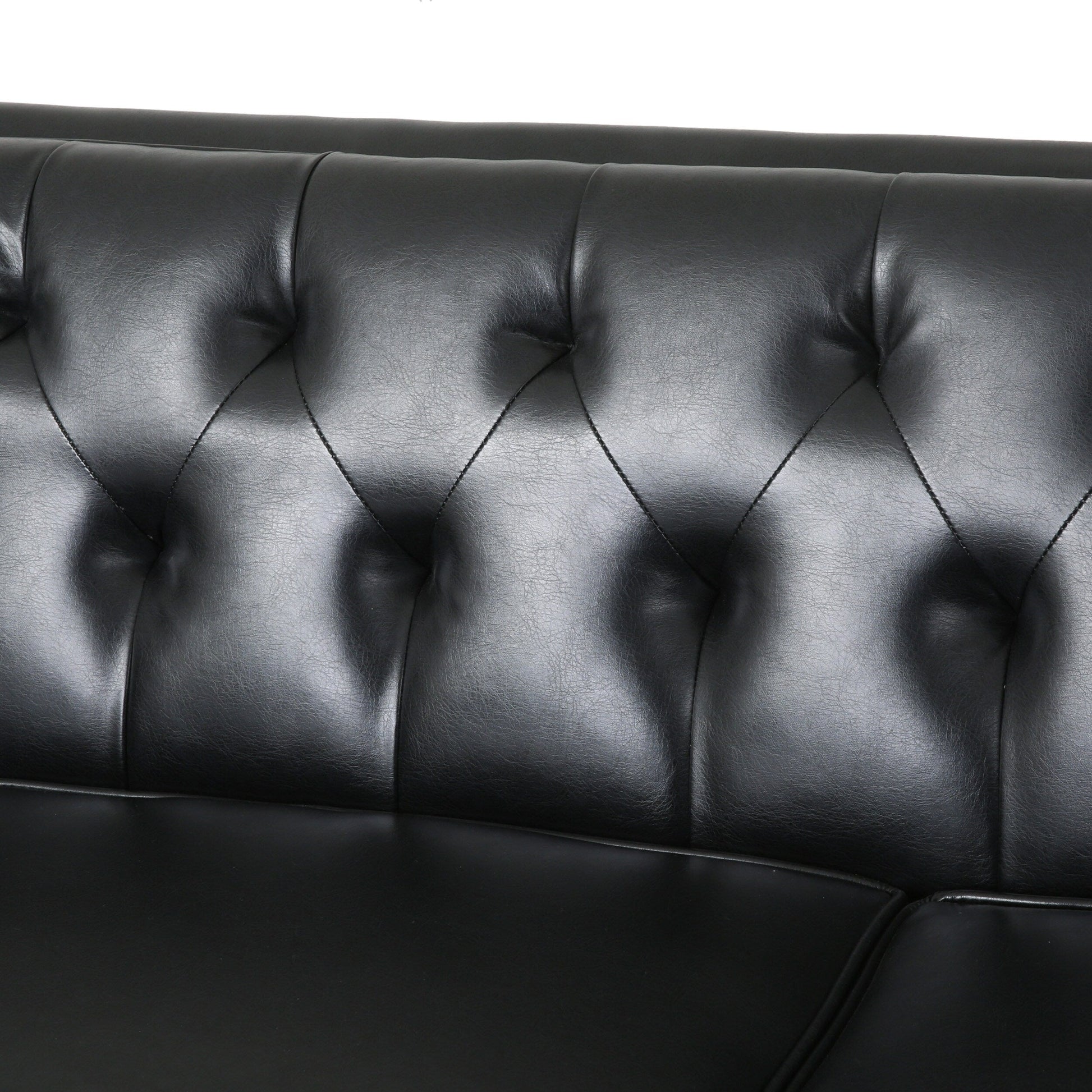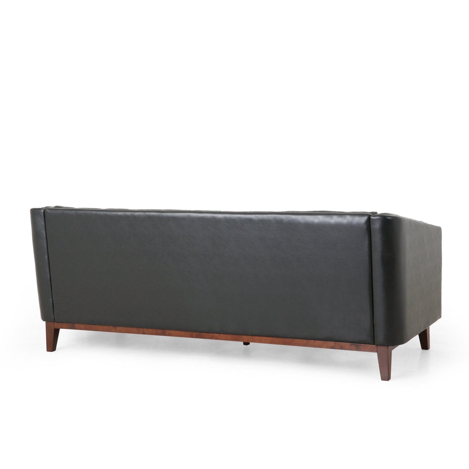 Canapé 3 places en similicuir noir de 81 pouces avec dossier capitonné et pieds en bois massif