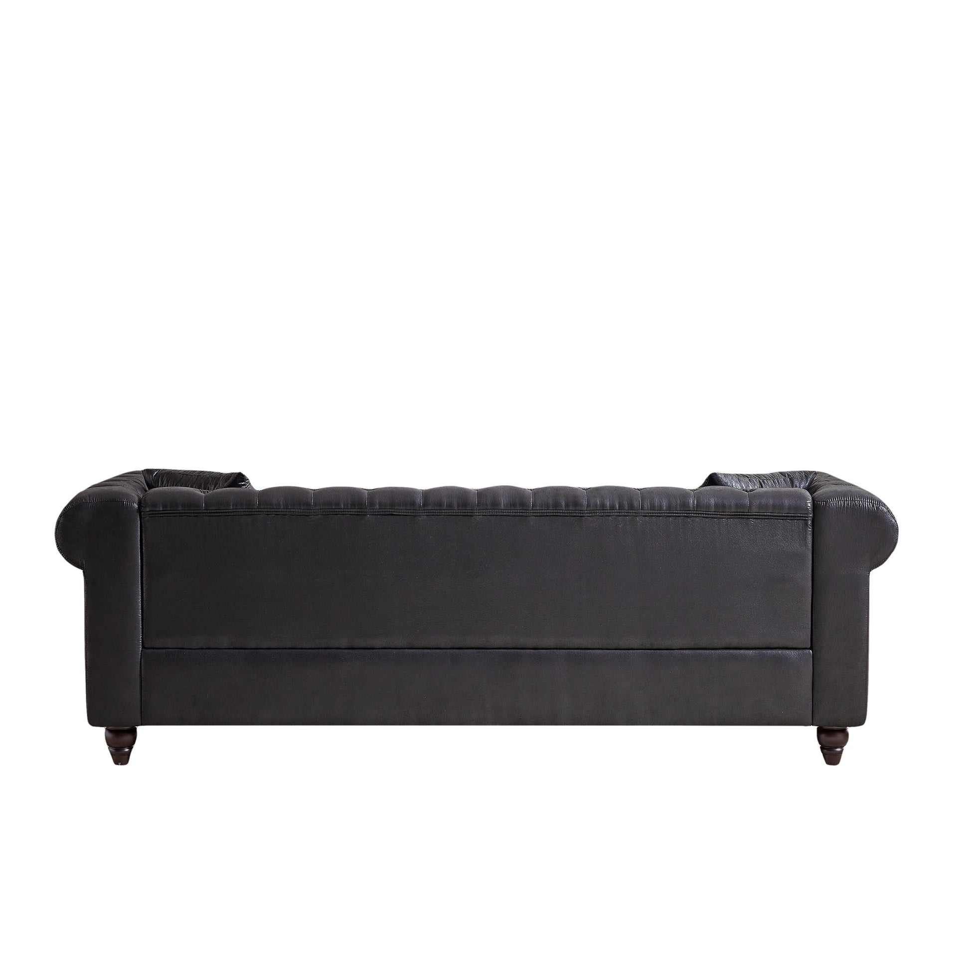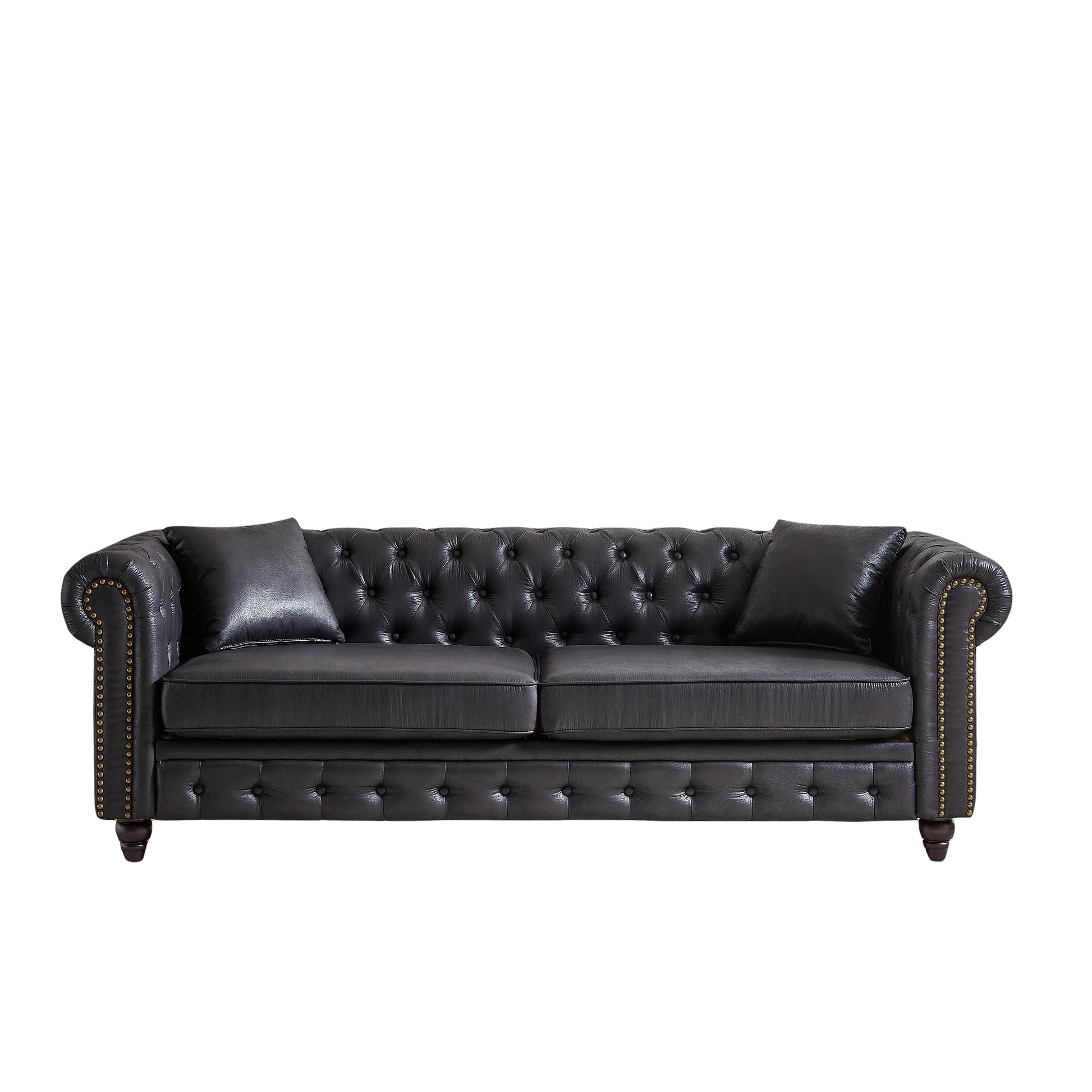 Canapé Chesterfield 3 places en tissu technique noir 85,5 avec accoudoirs roulés et 2 coussins pour le salon
