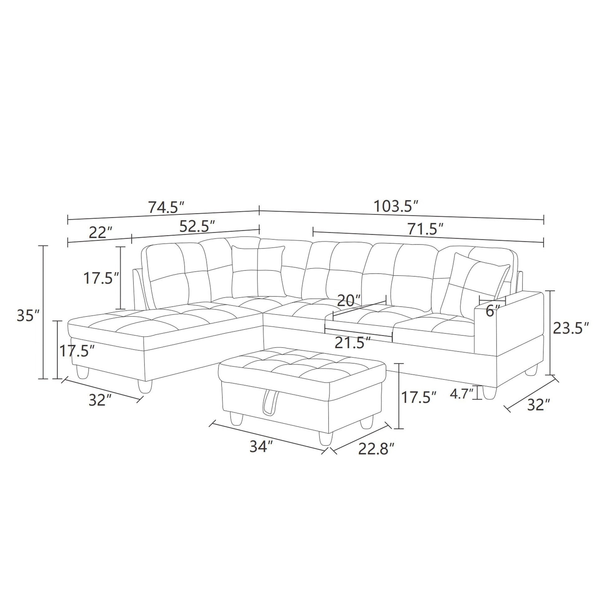 2. Sièges spacieux et confortables : la conception en L à 4 places offre suffisamment d'espace pour la famille et les invités, avec un rembourrage en mousse épaisse pour un confort supérieur