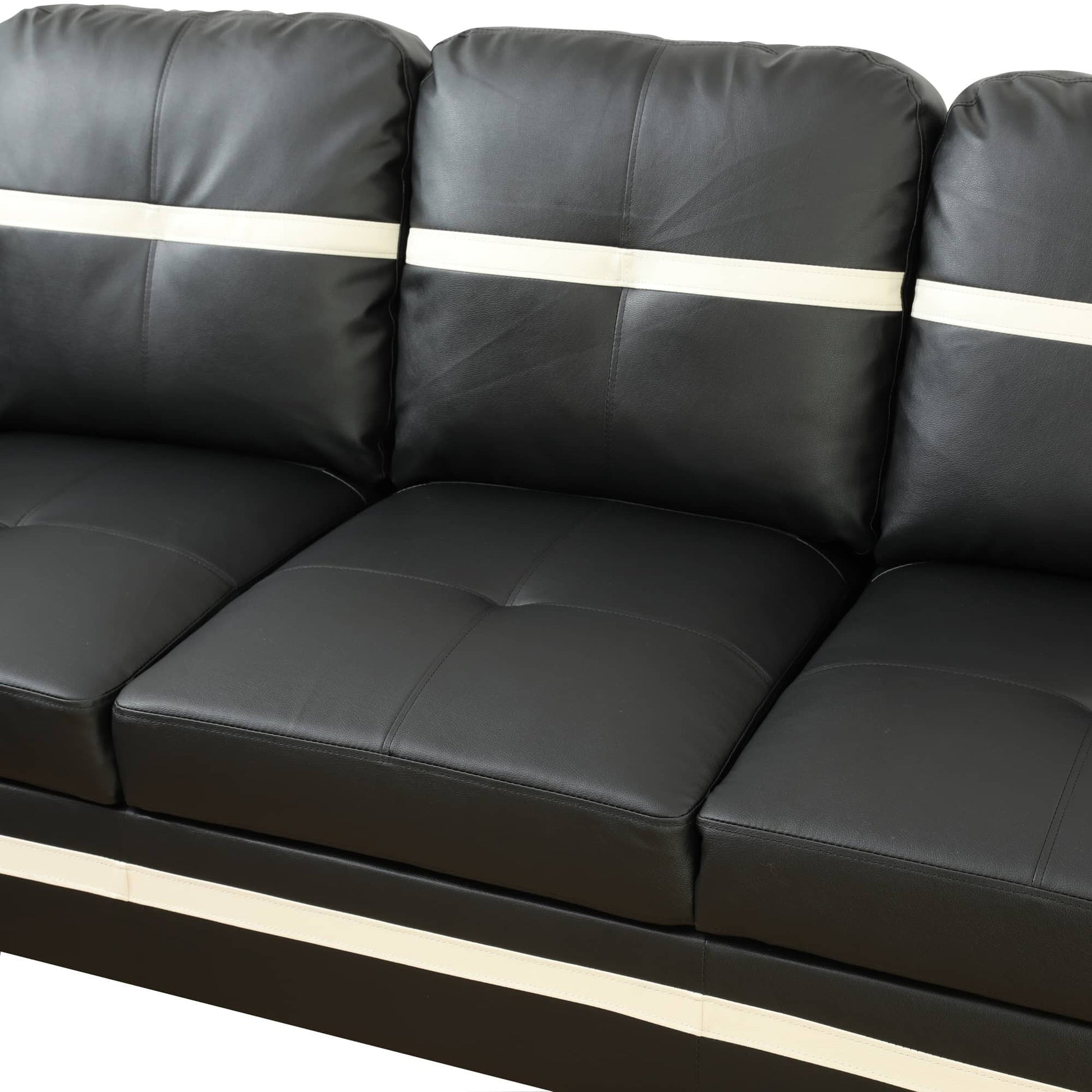 Ensemble de canapés de salon 3 pièces en cuir synthétique semi-PU noir et blanc