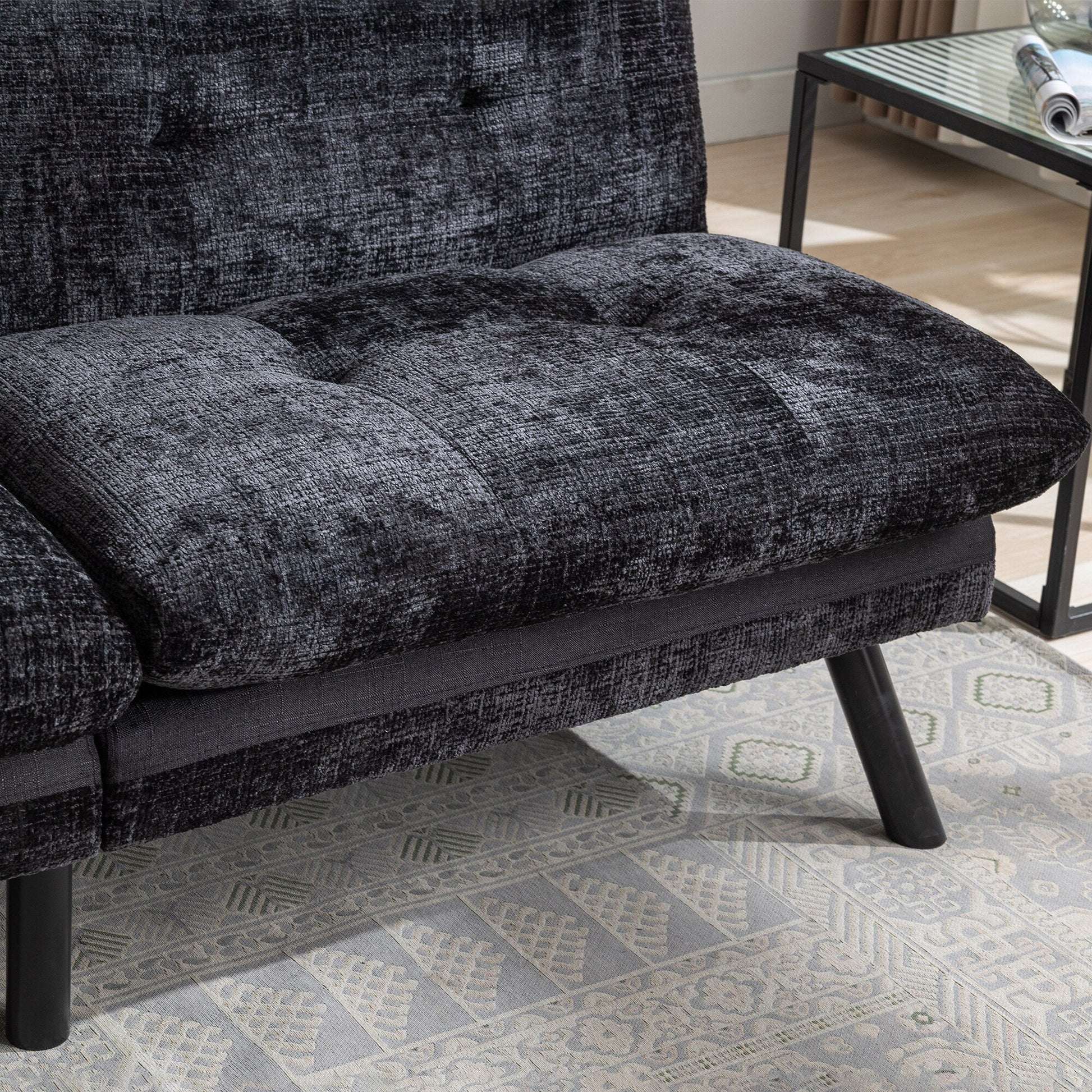Canapé-lit futon convertible en chenille noire