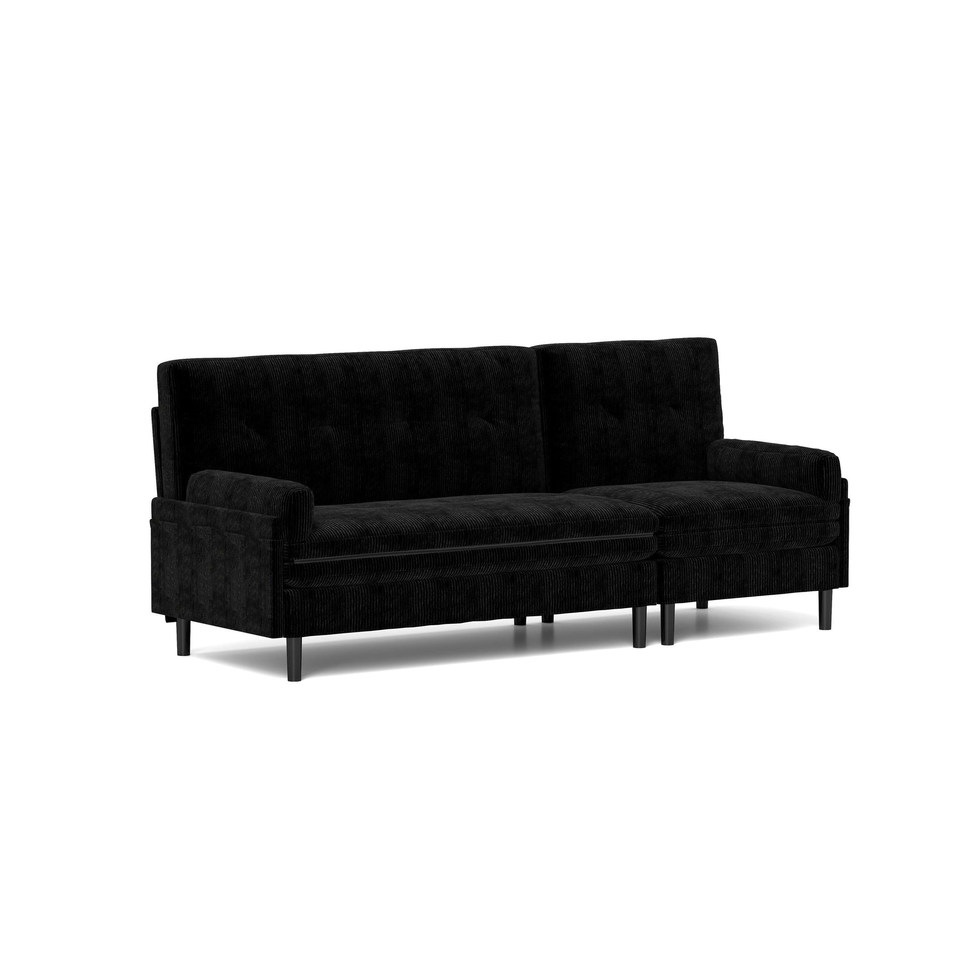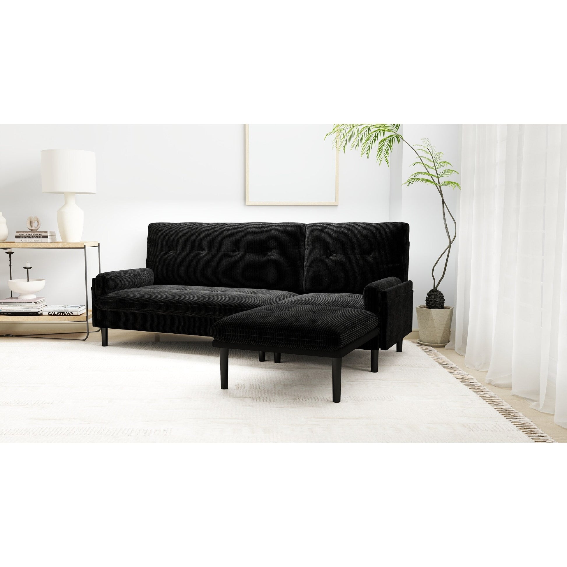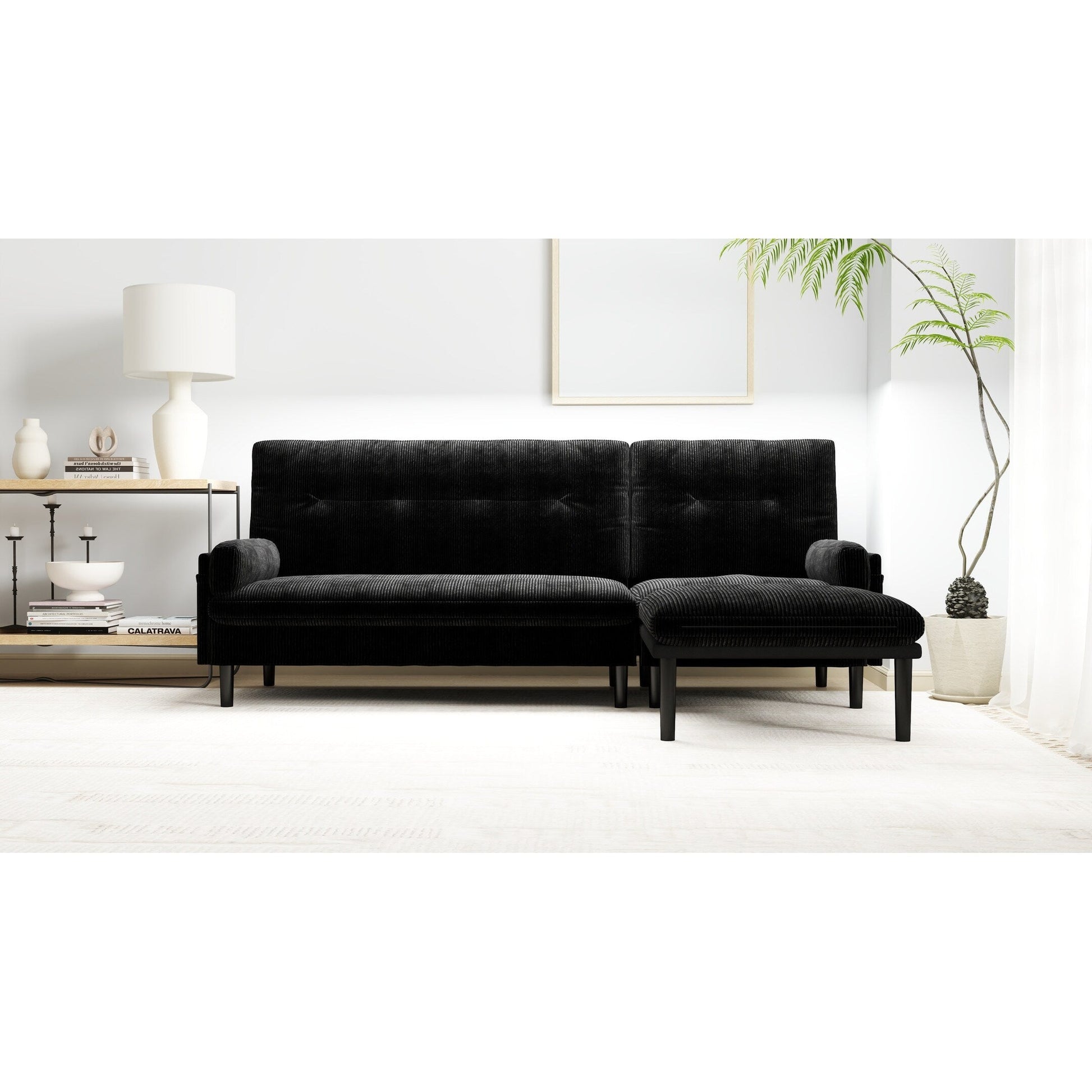 Canapé 3 places réglable en velours côtelé noir et lit d'appoint
