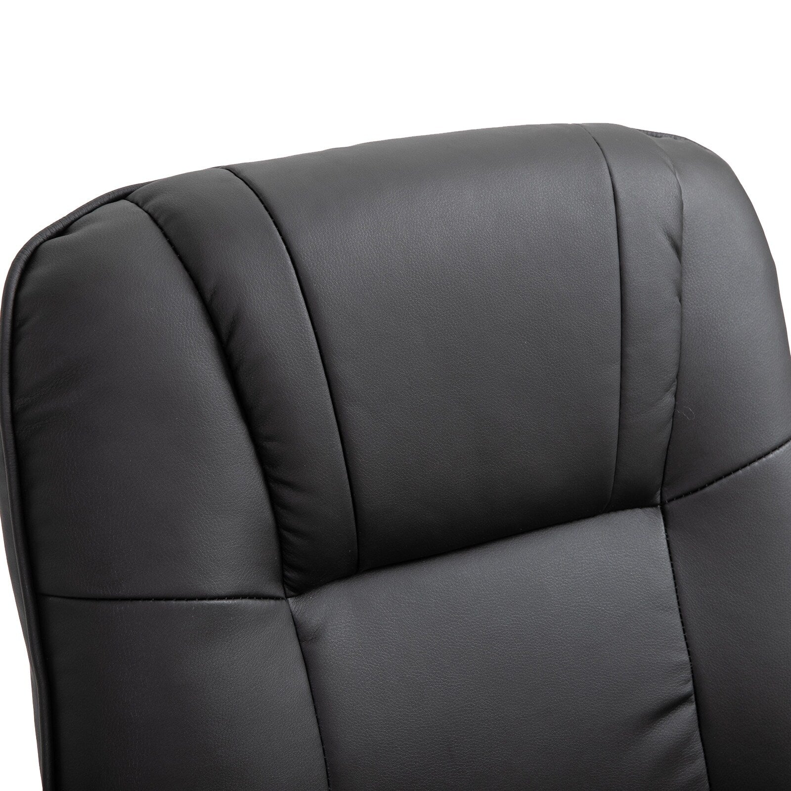 Fauteuil inclinable en similicuir noir, fauteuil de salon pivotant manuel avec repose-pieds réglable, accoudoir et base en bois enveloppée