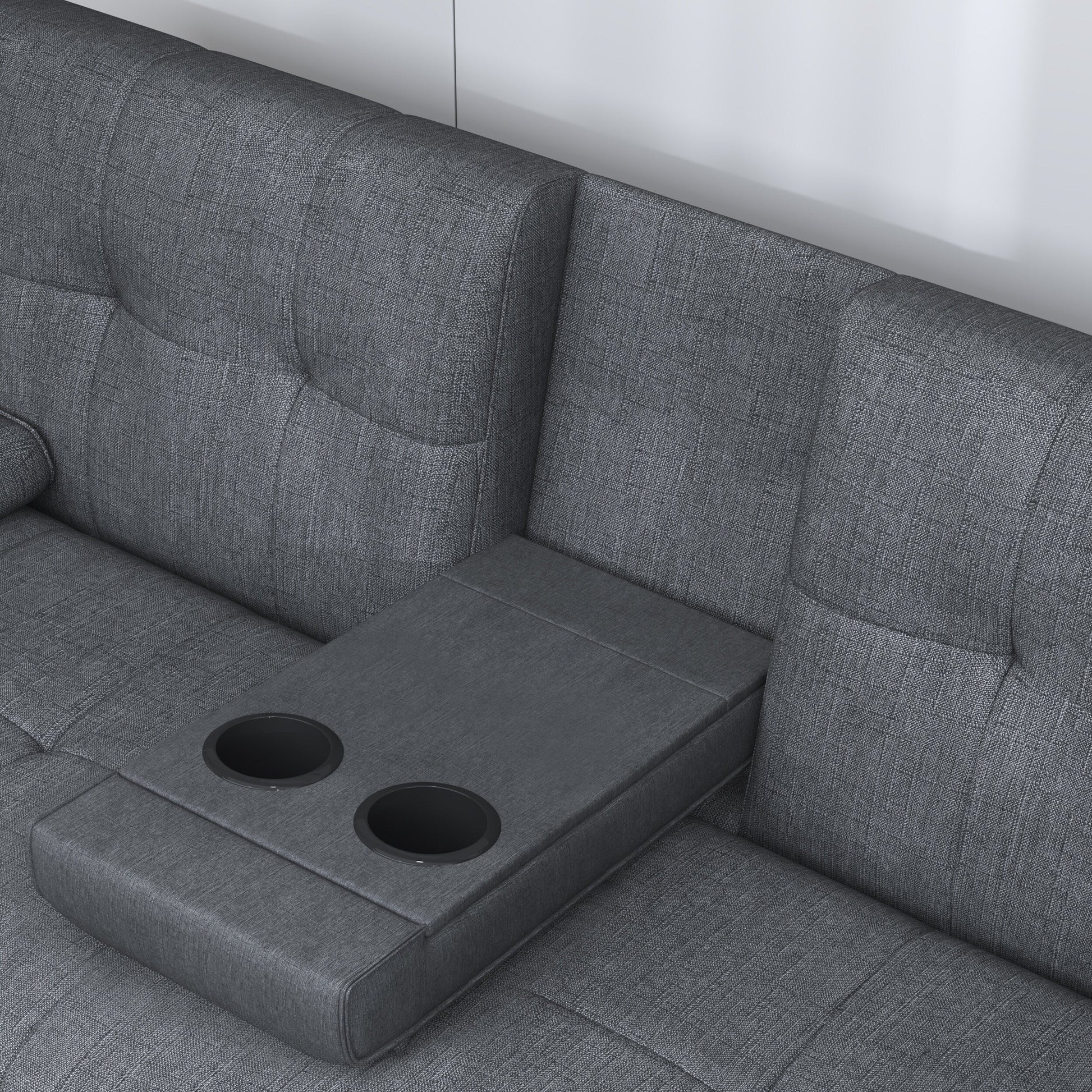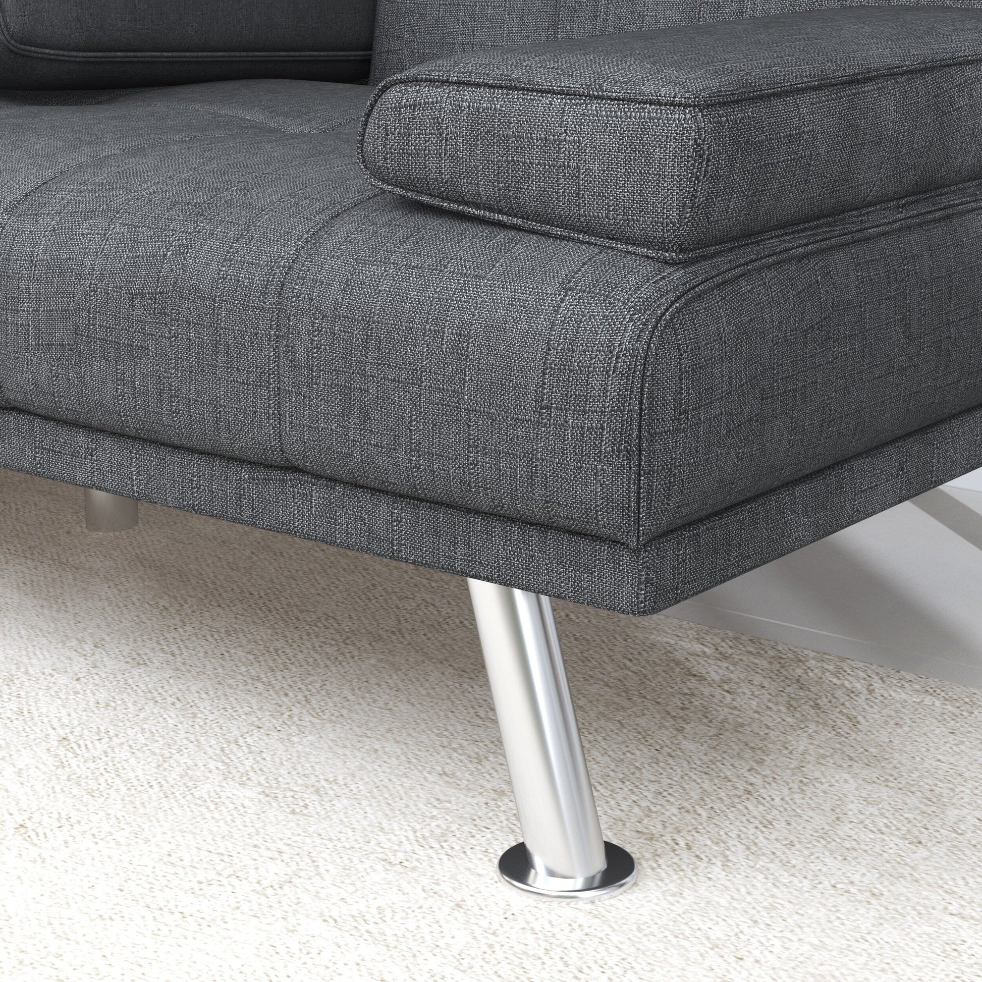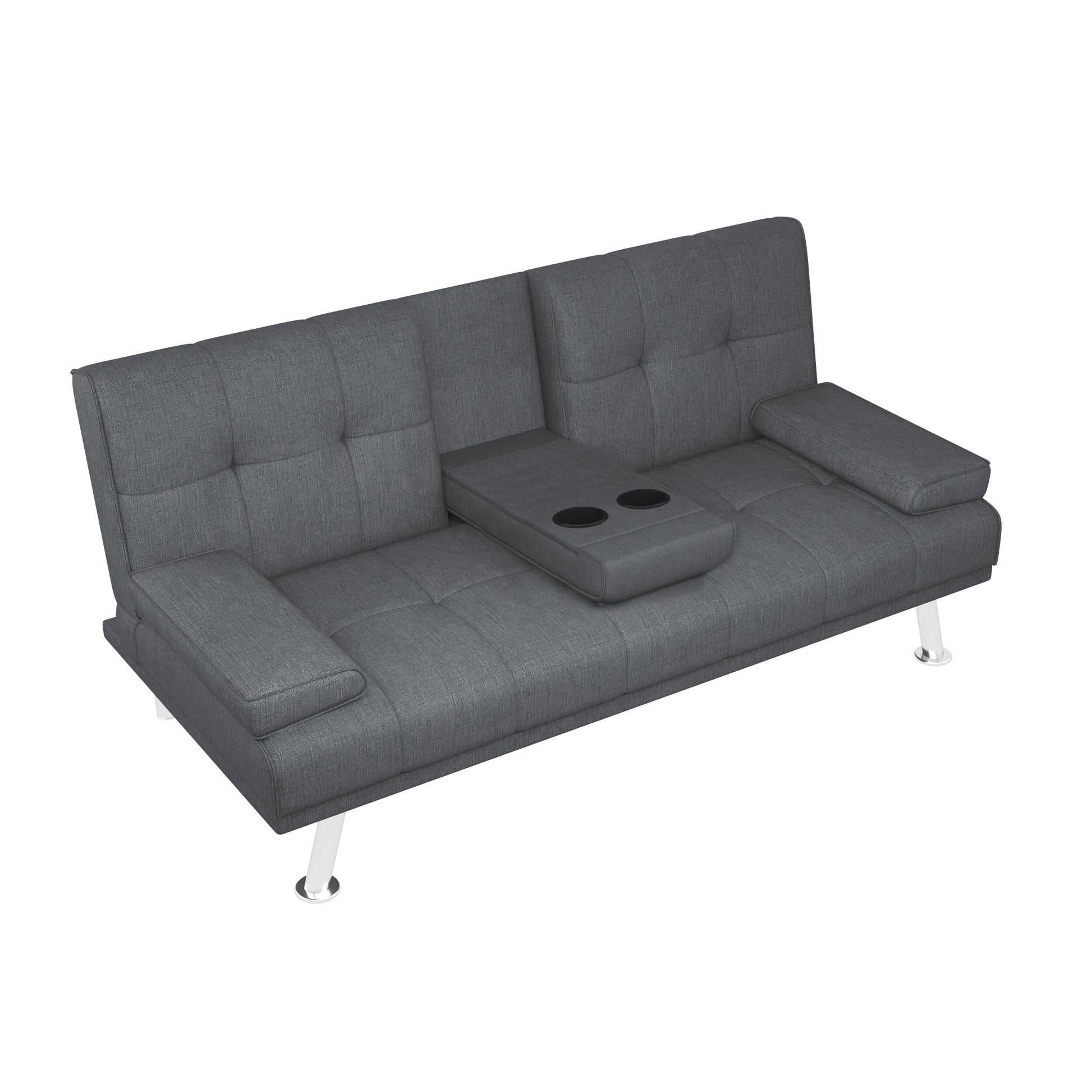 Canapé-lit 66 places rembourré noir et gris avec 2 porte-gobelets et pieds en acier inoxydable pour le salon