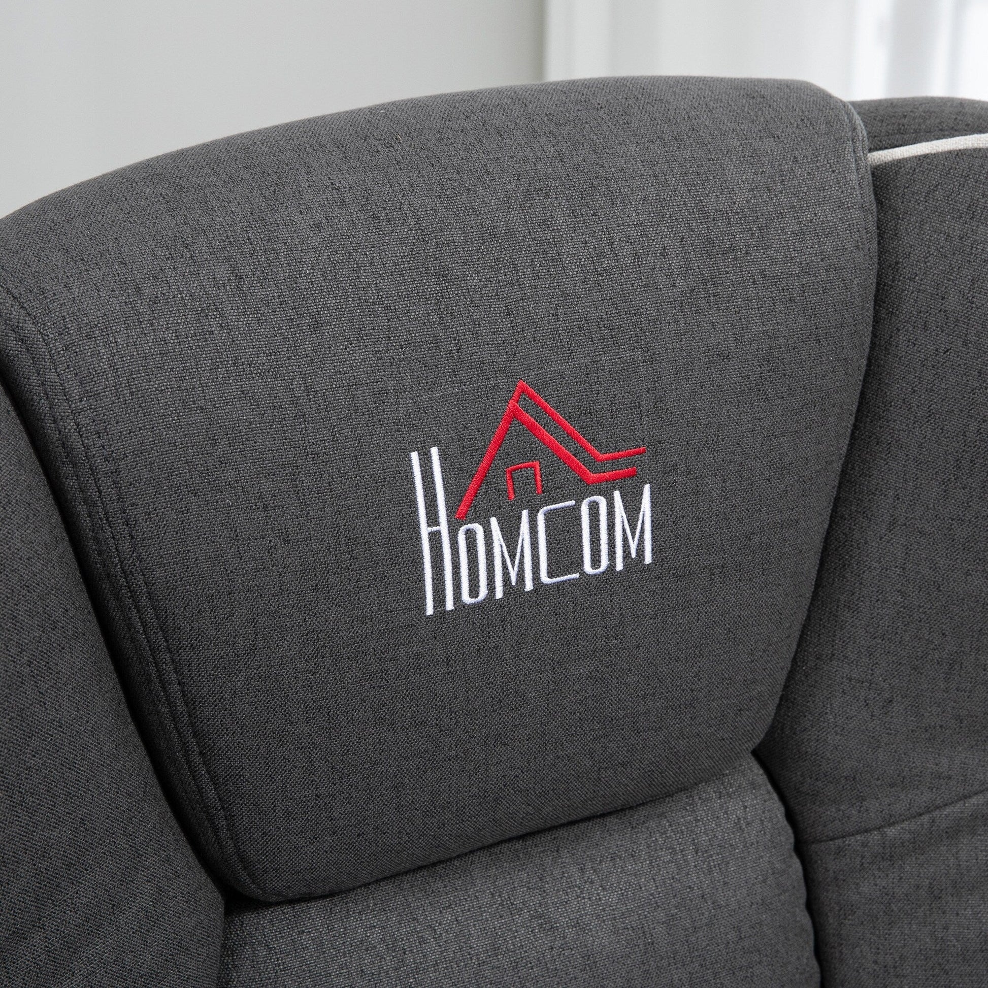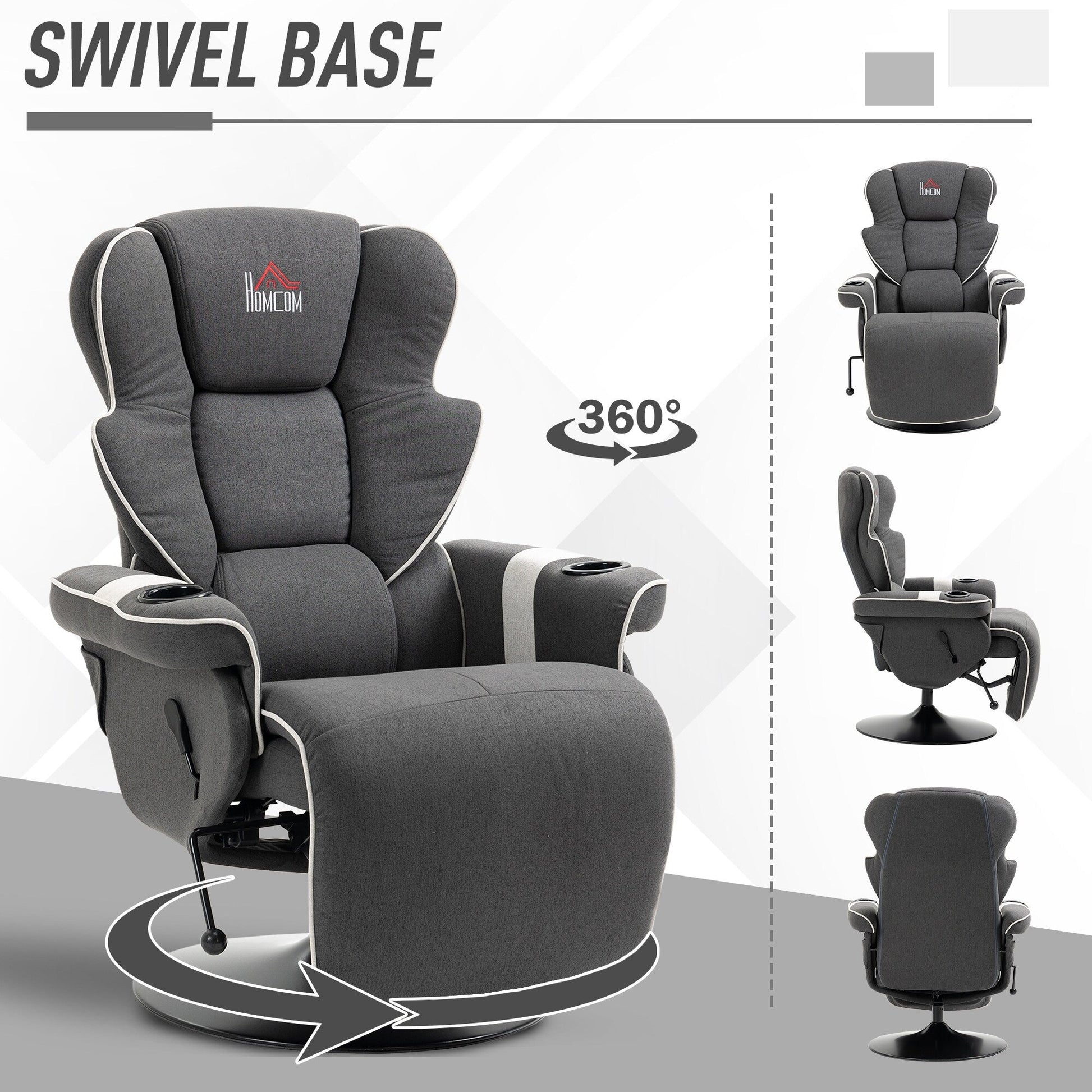 Fauteuil inclinable manuel pivotant en lin noir avec repose-pieds et deux porte-gobelets pour salon