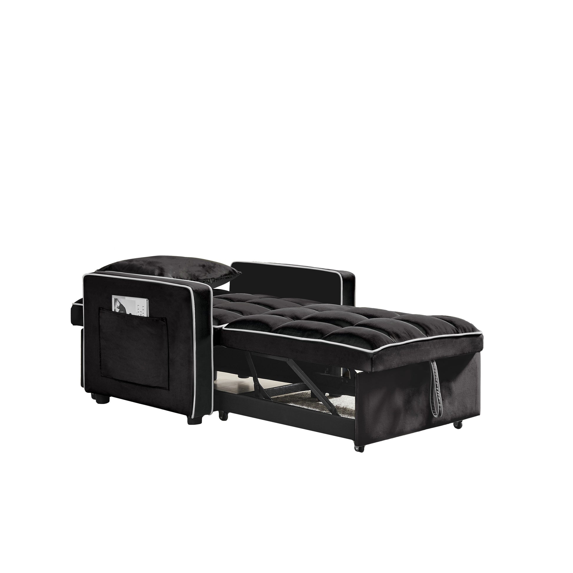 Canapé-lit simple 3 en 1 en velours noir moderne 35,43 cm avec dossier réglable et poche pour le salon