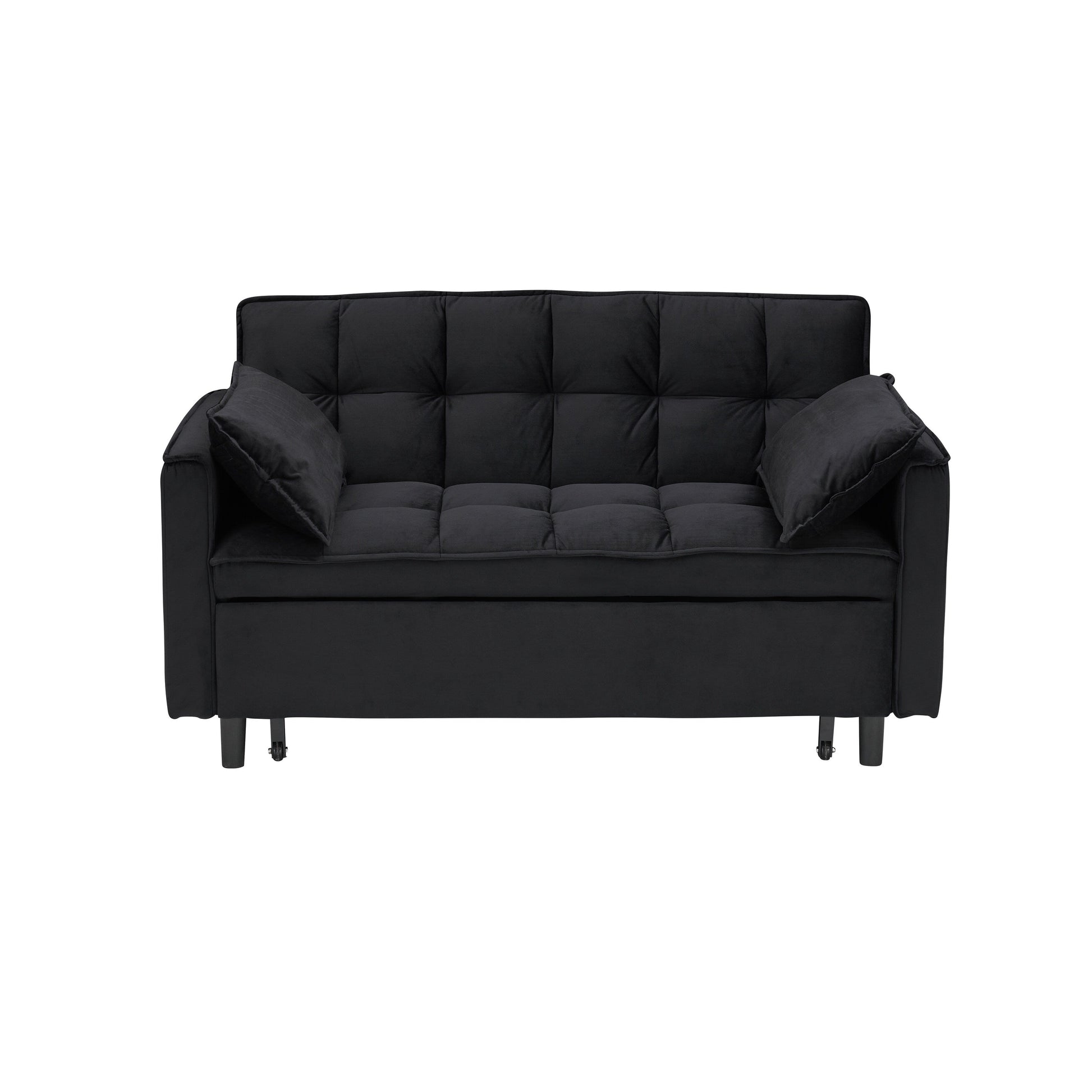 Canapé-lit convertible 3 en 1 en velours noir moderne 55 avec dossier et oreillers pour le salon