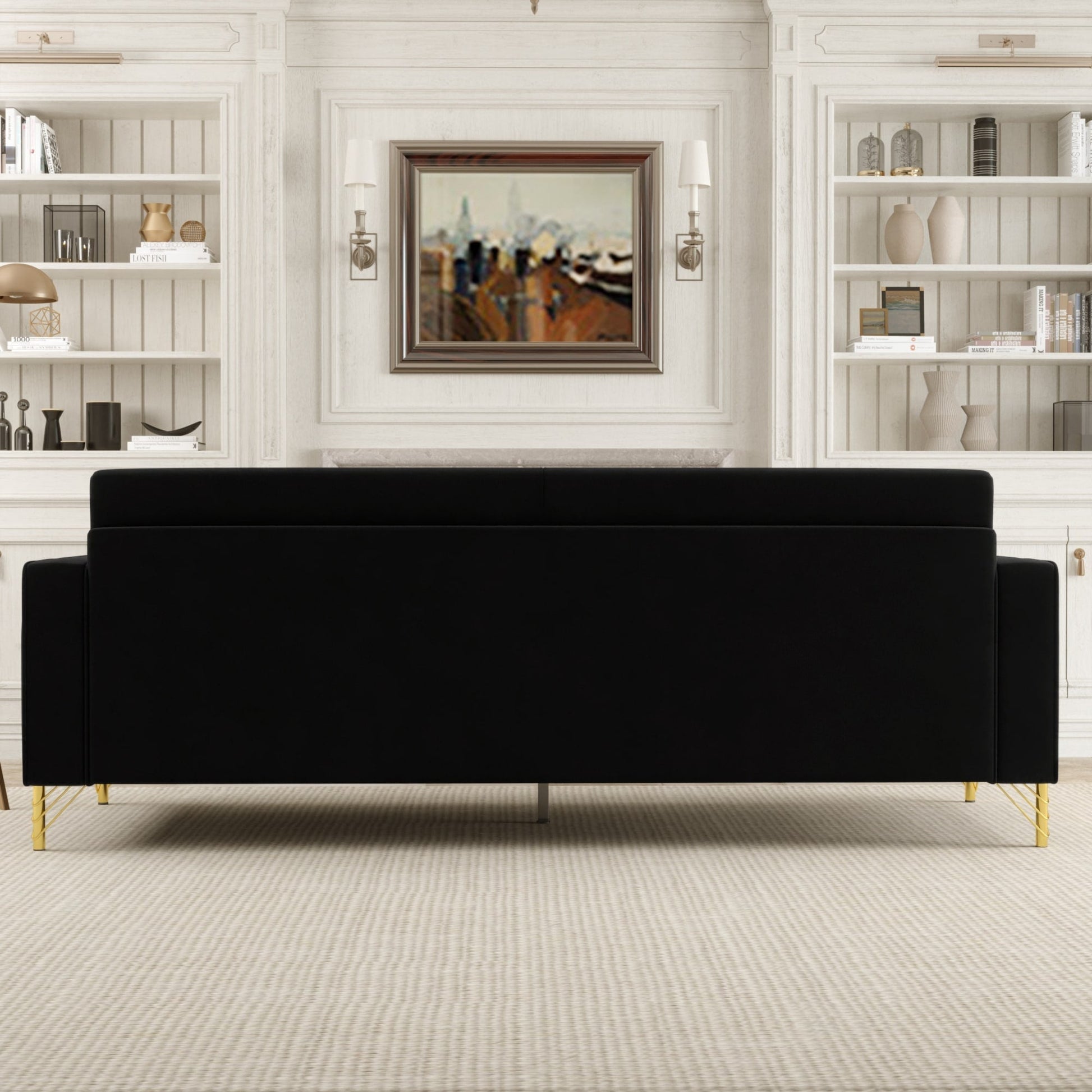 Canapé 3 places en velours noir moderne 85,63 avec touches dorées et coussins moelleux pour le salon