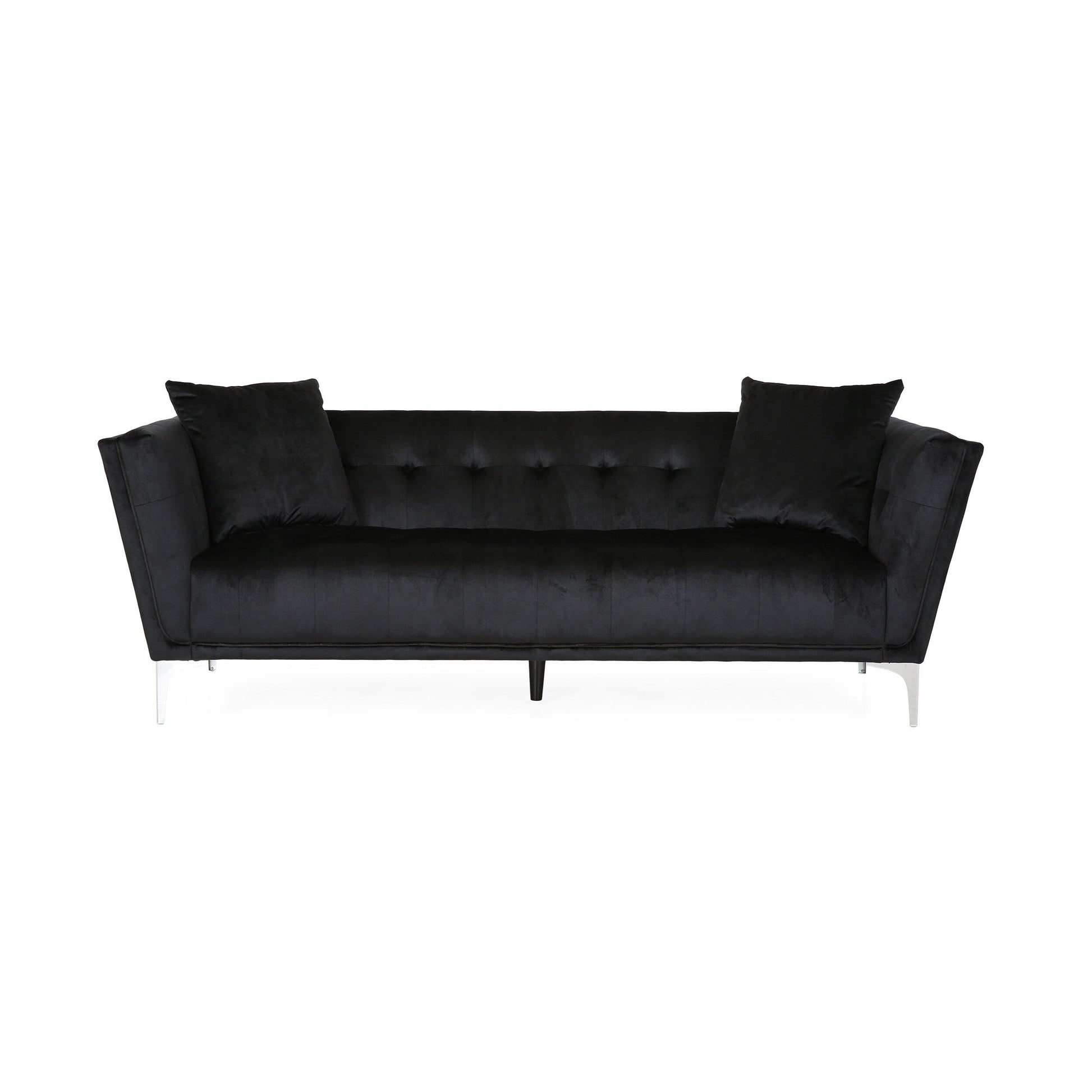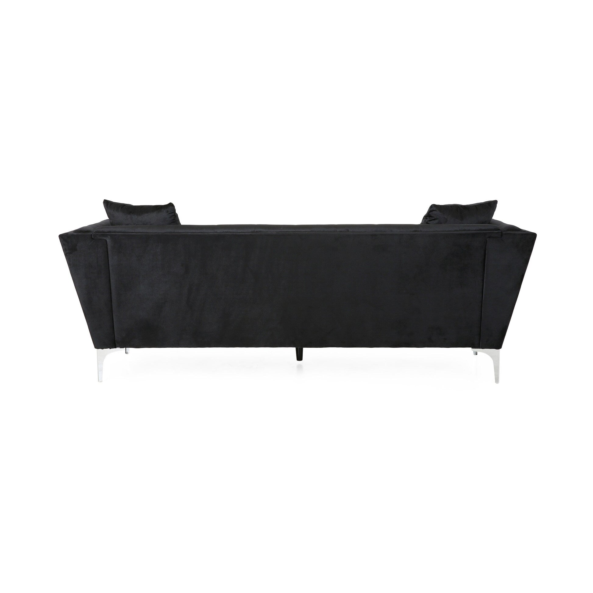 Canapé 3 places en velours noir moderne 86,75 avec coussins et cadre robuste pour le salon