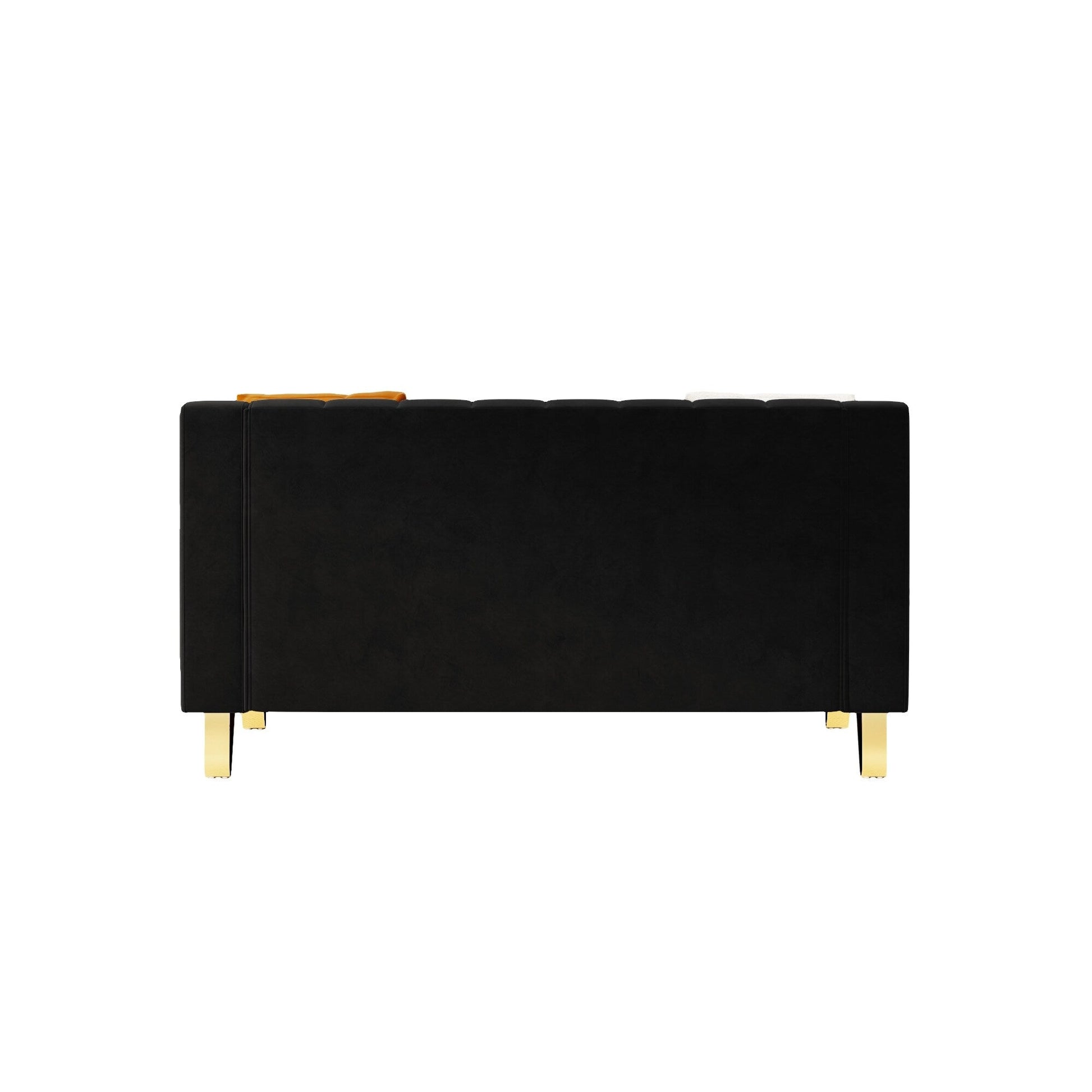 Canapé causeuse moderne en velours noir avec touches dorées et coussins moelleux pour le salon