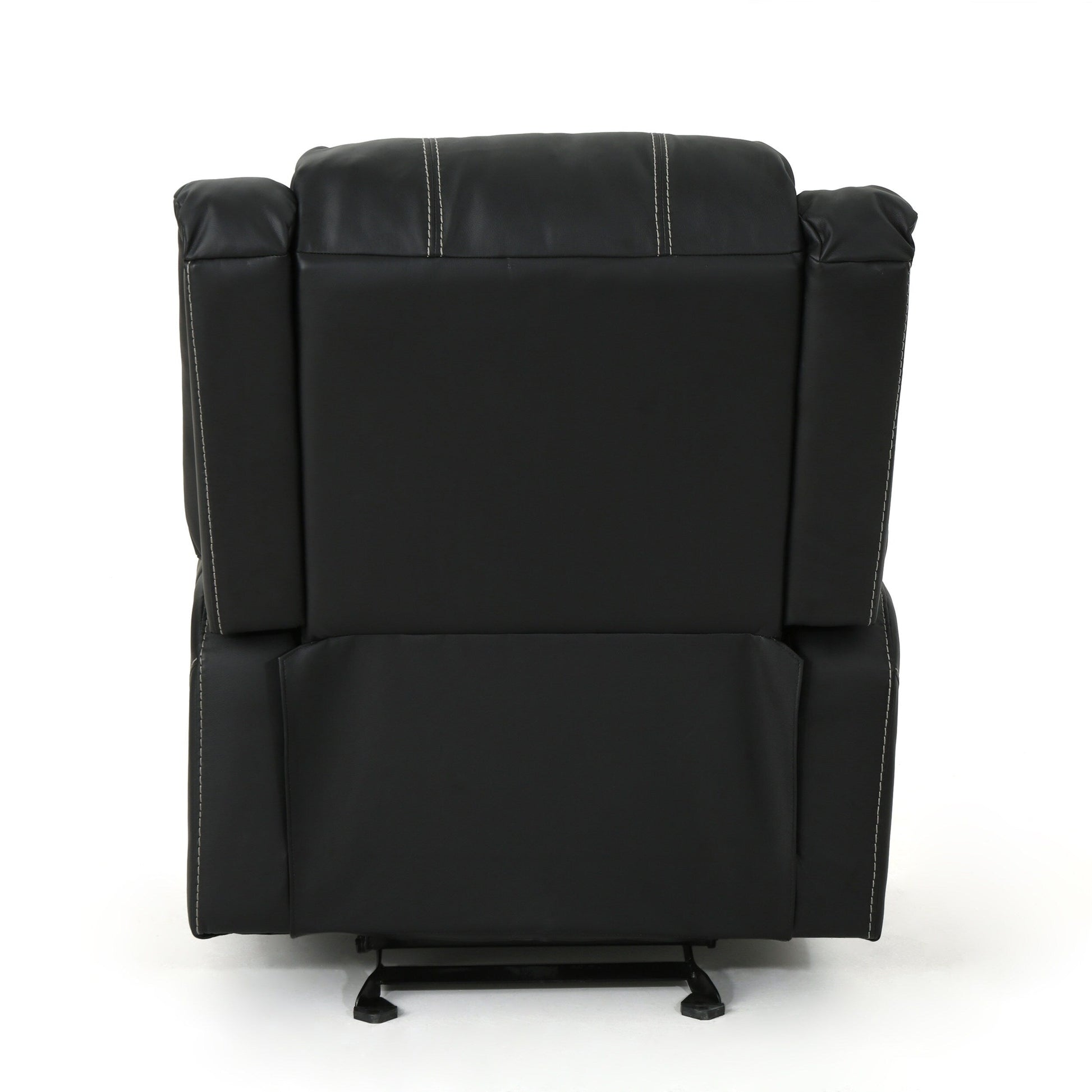 Fauteuil inclinable en cuir PU noir avec porte-gobelets en acier, inclinaison sans effort et confort luxueux