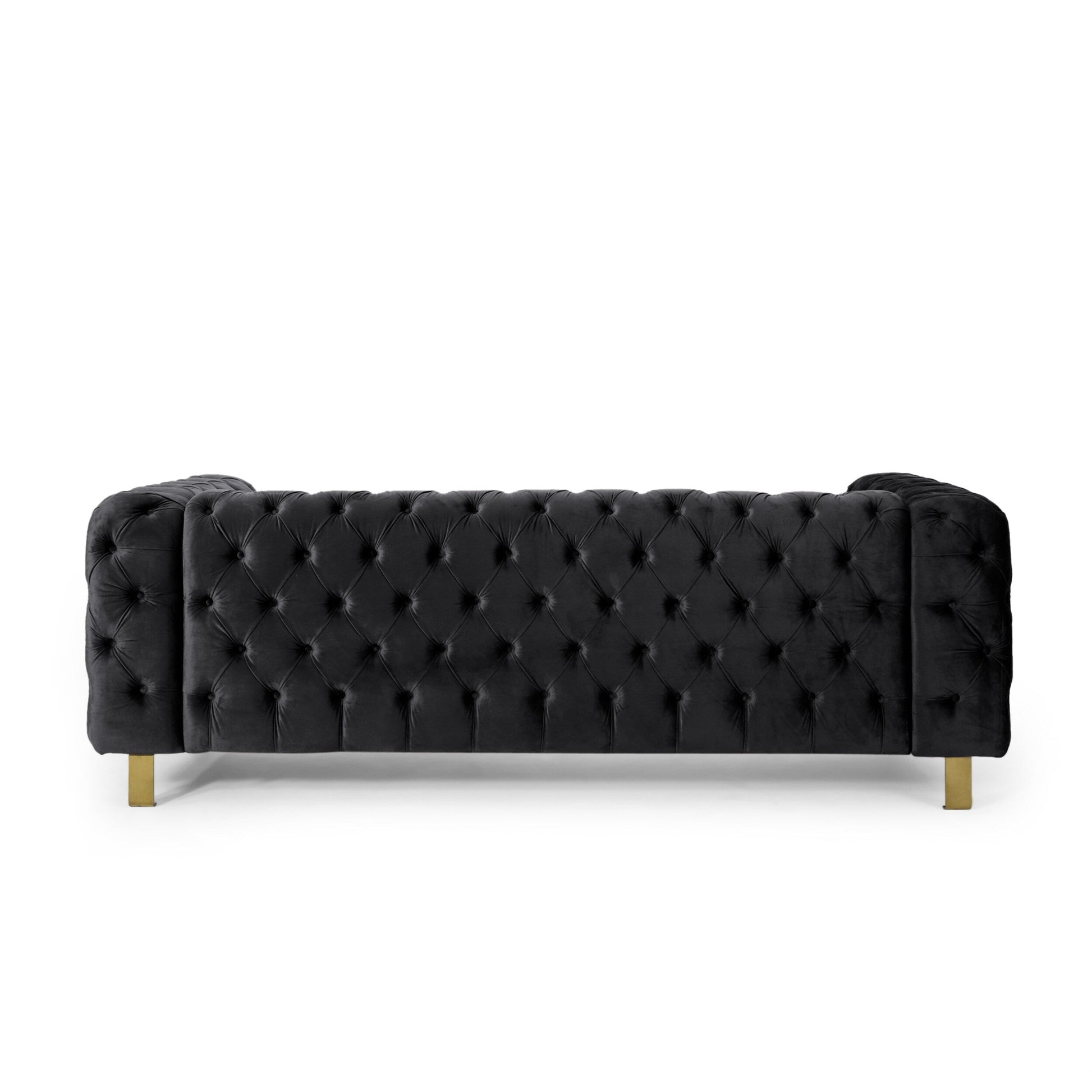 Canapé 3 places capitonné en velours noir avec pieds en fer