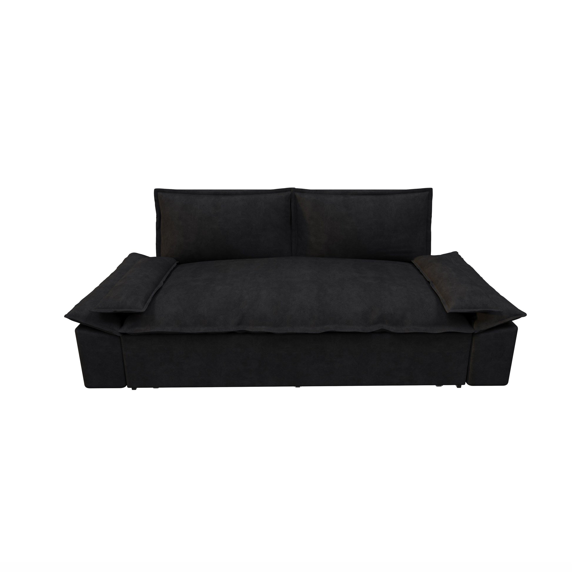 Canapé-lit gigogne en velours noir avec oreillers moelleux