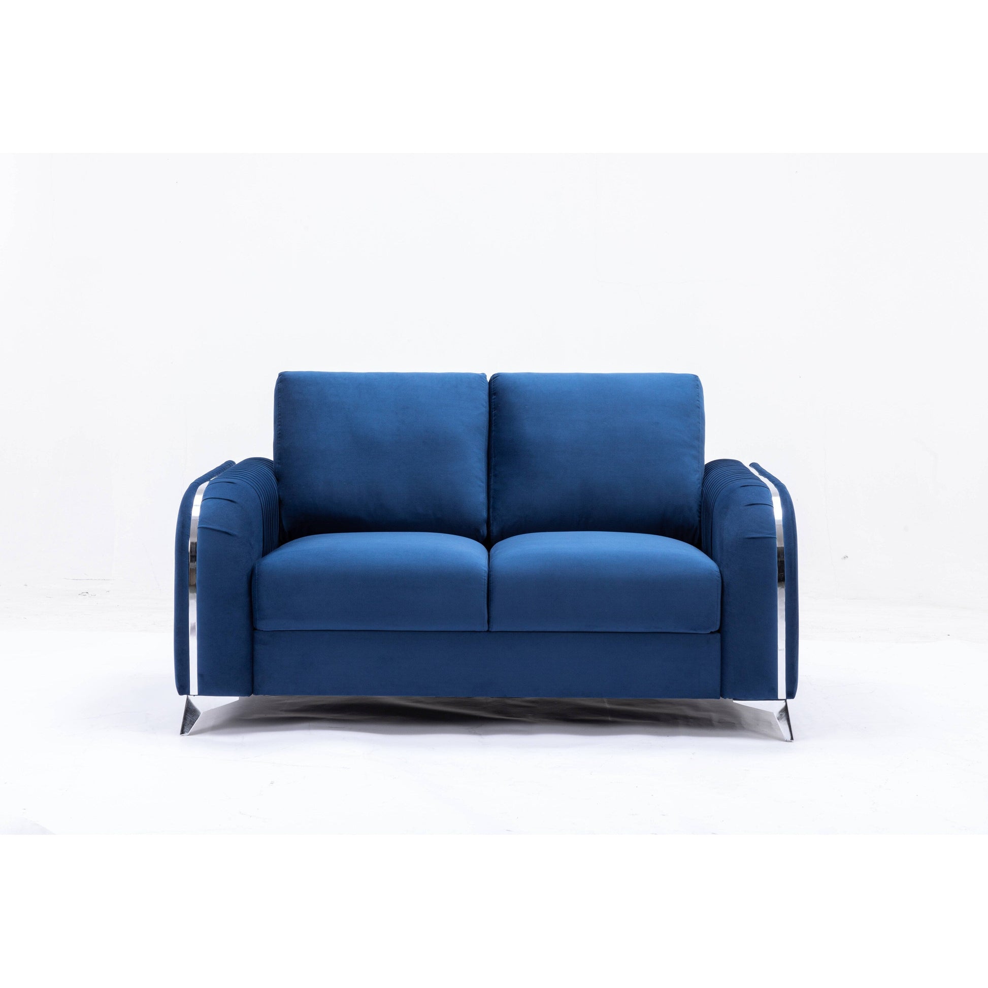 Affirmez votre style avec la causeuse Wenona en velours bleu. Le bleu du revêtement en velours est une teinte classique qui apportera une touche de couleur joyeuse à votre intérieur. Cette causeuse est rehaussée de finitions chromées polies assorties le long des accoudoirs et des pieds. Les accoudoirs arborent un plissé vertical attrayant qui crée un magnifique effet 3D contemporain. Cette causeuse offre une assise moelleuse à ressorts ensachés pour des heures de confort devant la télévision en famille.