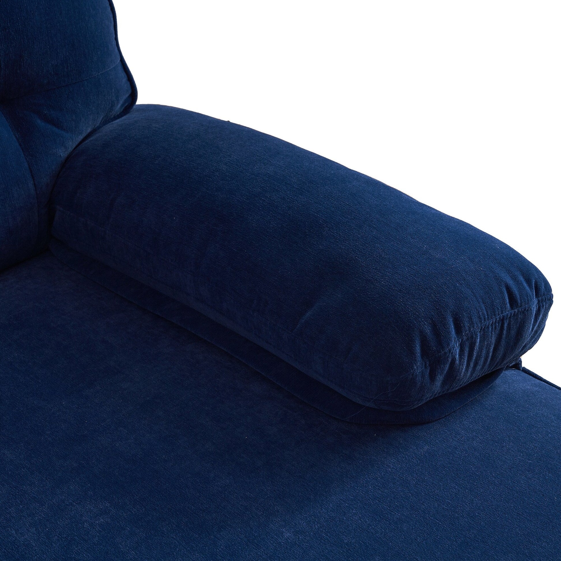 Canapé sectionnel 3 places en velours bleu 83 pouces, avec dossier et accoudoirs amovibles, coussins en mousse souple et pieds en métal.