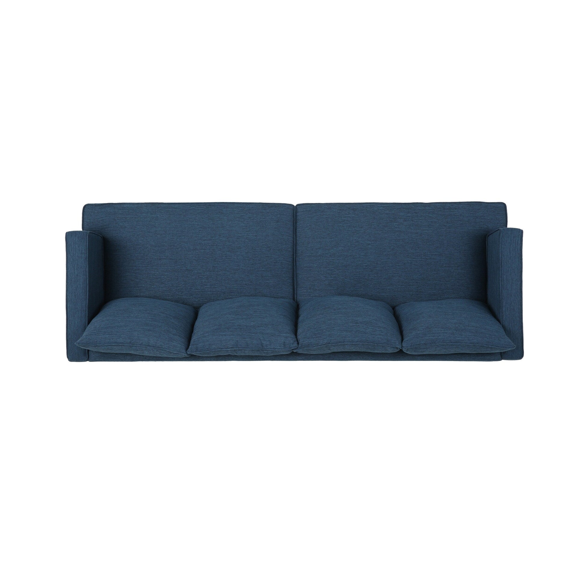Canapé 3 places bleu en tissu polyester de 86 pouces avec pieds en bois massif, dossier capitonné et assise à ressorts ensachés