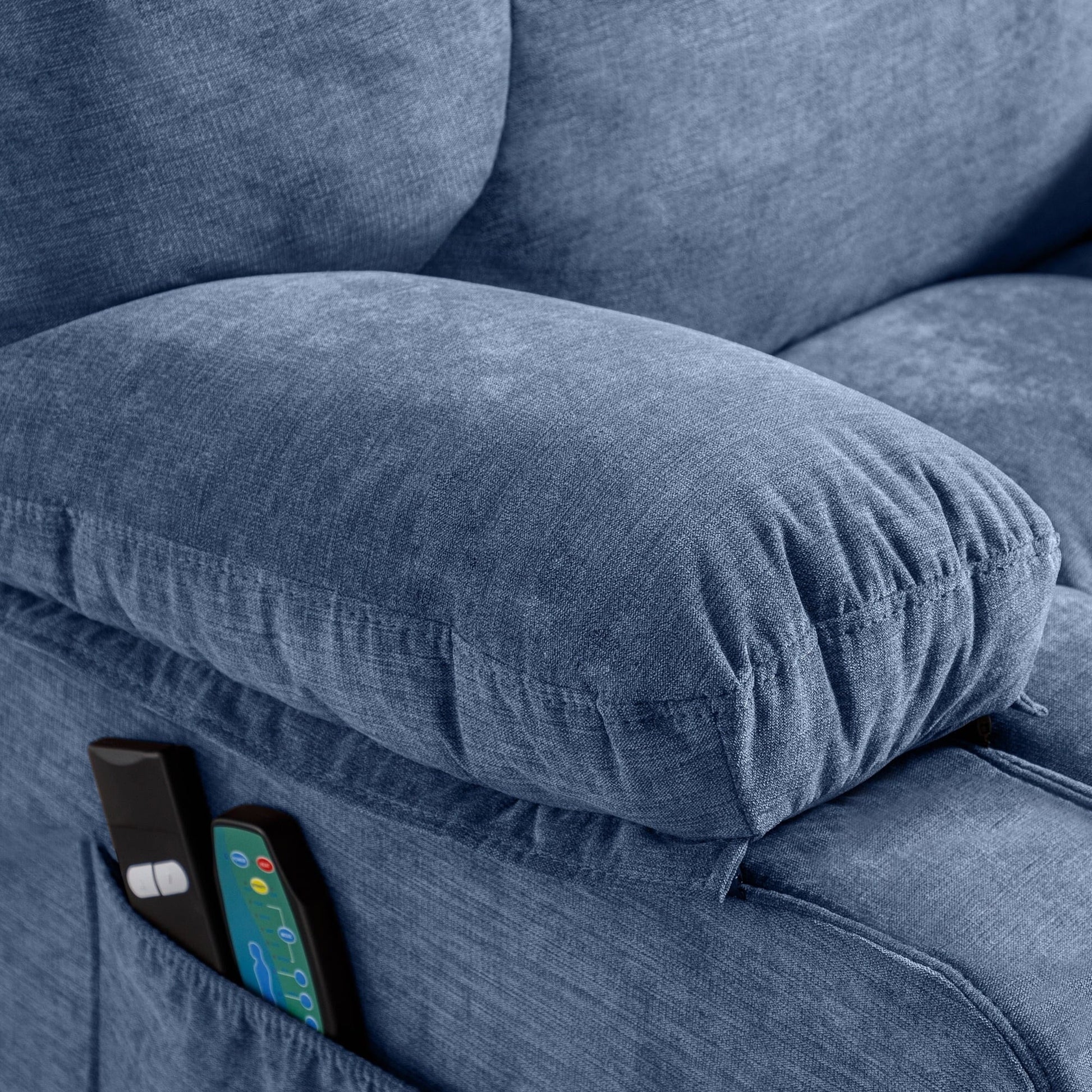 Fauteuil inclinable électrique bleu avec chauffage, massage, chargement USB, rangement latéral et télécommande