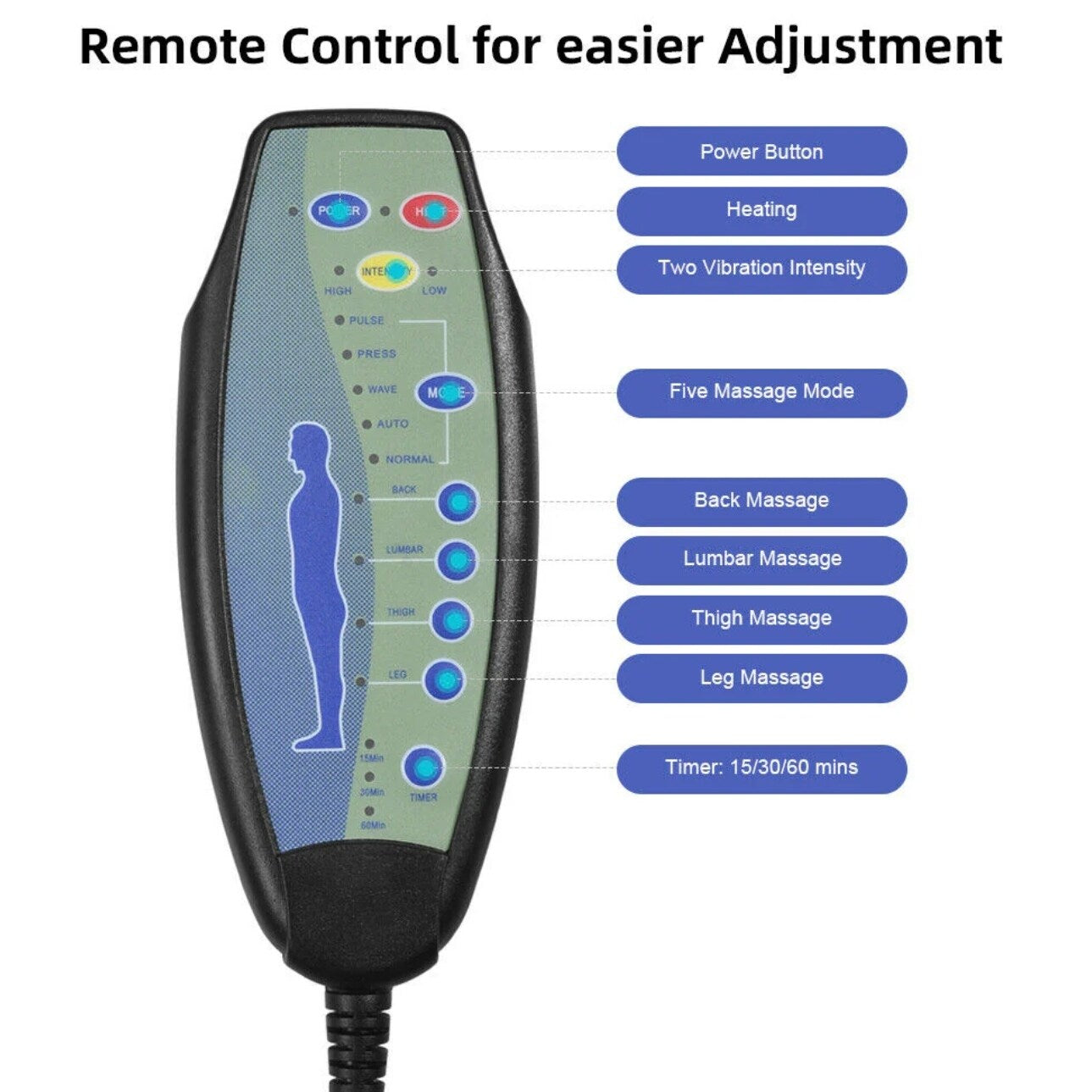 - Fauteuil de massage inclinable fonctionnel : il dispose de 8 puissants moteurs de massage par vibration, de 4 réglages de zone personnalisés, notamment le dos, les lombaires, les cuisses et les jambes. 10 niveaux d'intensité, 5 modes de massage et une chaleur apaisante qui procurent une relaxation complète du corps.