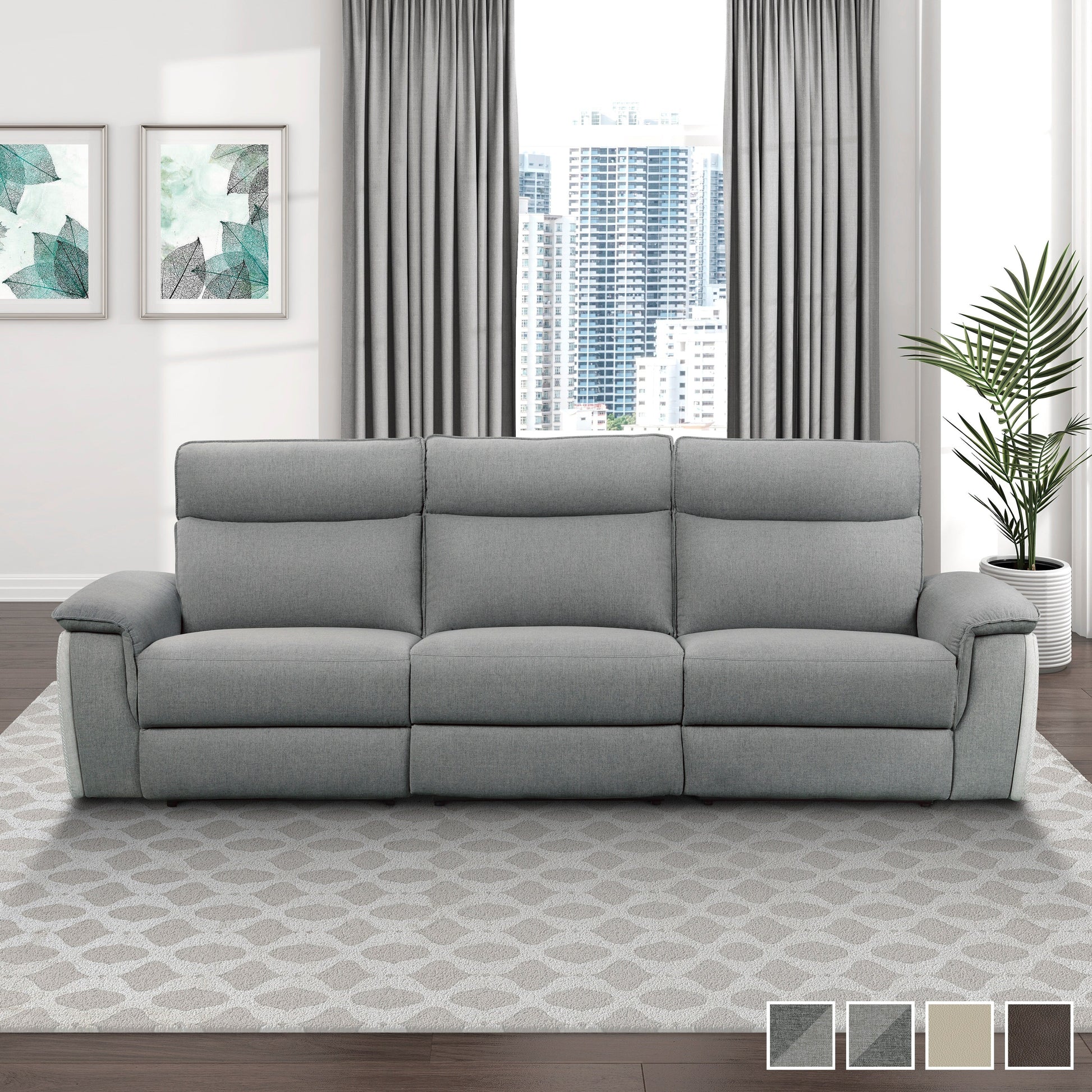La collection Blythe offre de nombreuses places assises pour vos amis et votre famille. Ce canapé est équipé de fauteuils inclinables électriques avec port USB. Le mécanisme d'inclinaison électrique vous permet d'atteindre la position souhaitée d'une simple pression sur un bouton. Les ports USB et les appuie-têtes électriques offrent des fonctionnalités supplémentaires pour personnaliser encore plus votre confort. Disponible en quatre revêtements : tissu bicolore gris clair , tissu bicolore gris foncé , cuir taupe assorti et cuir marron foncé assorti.