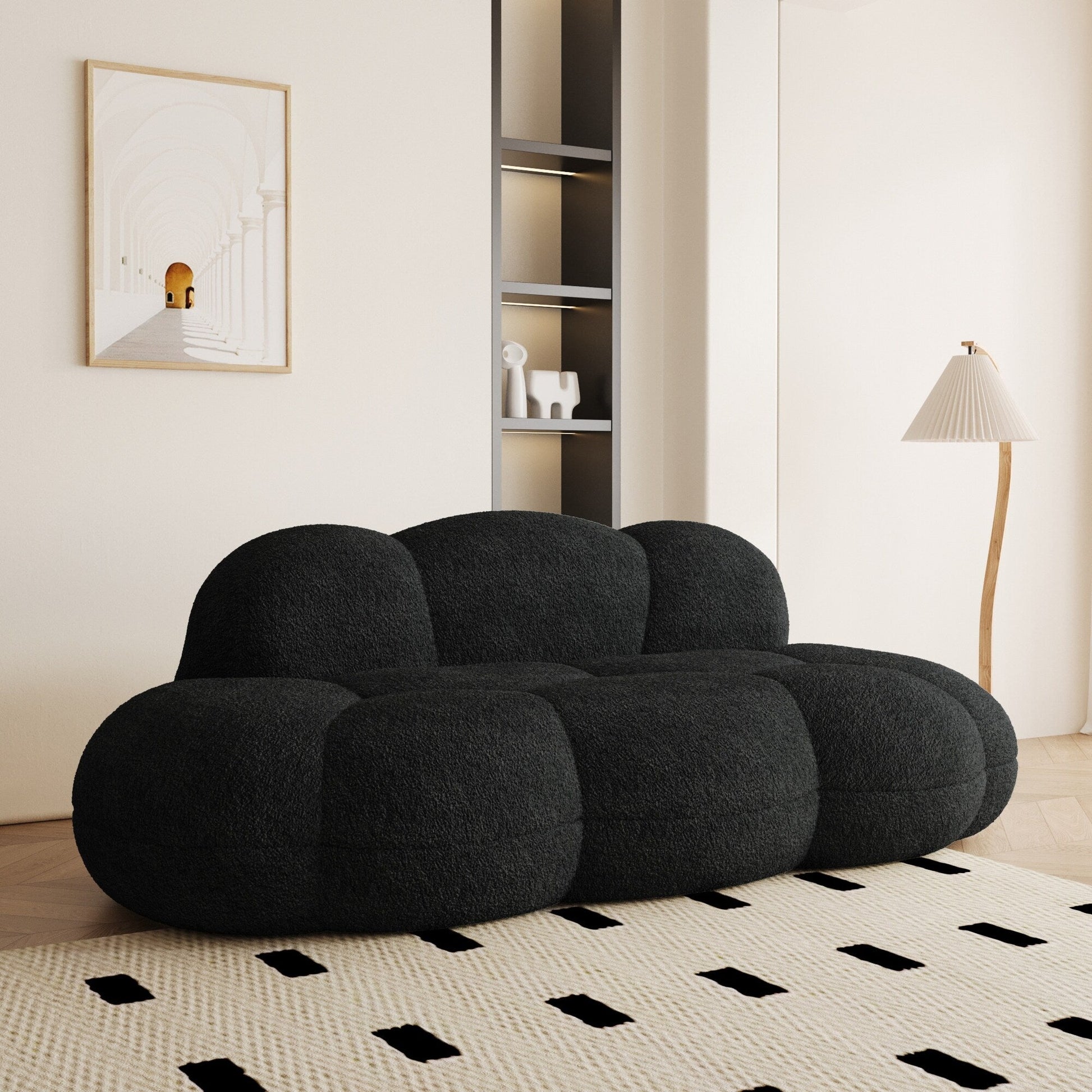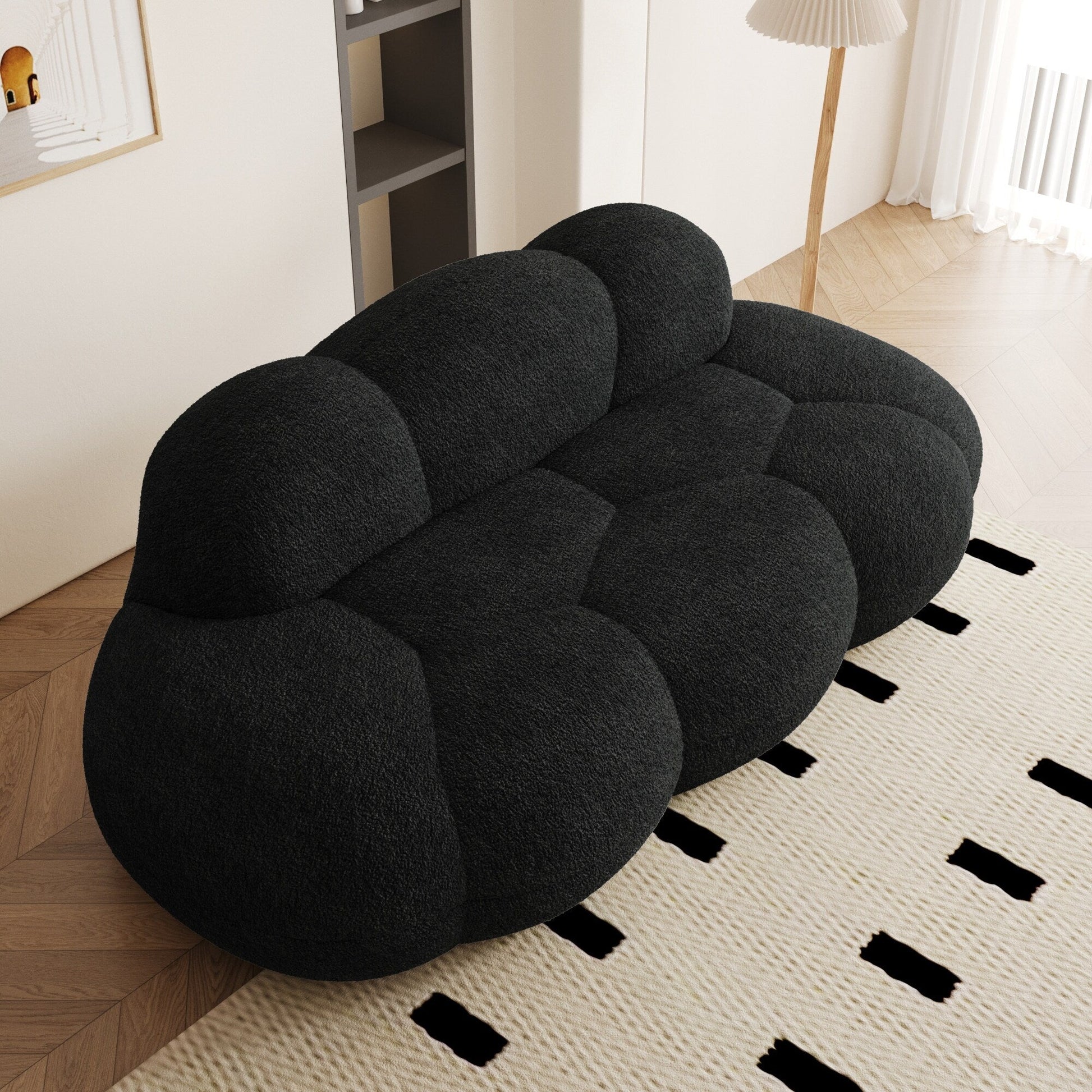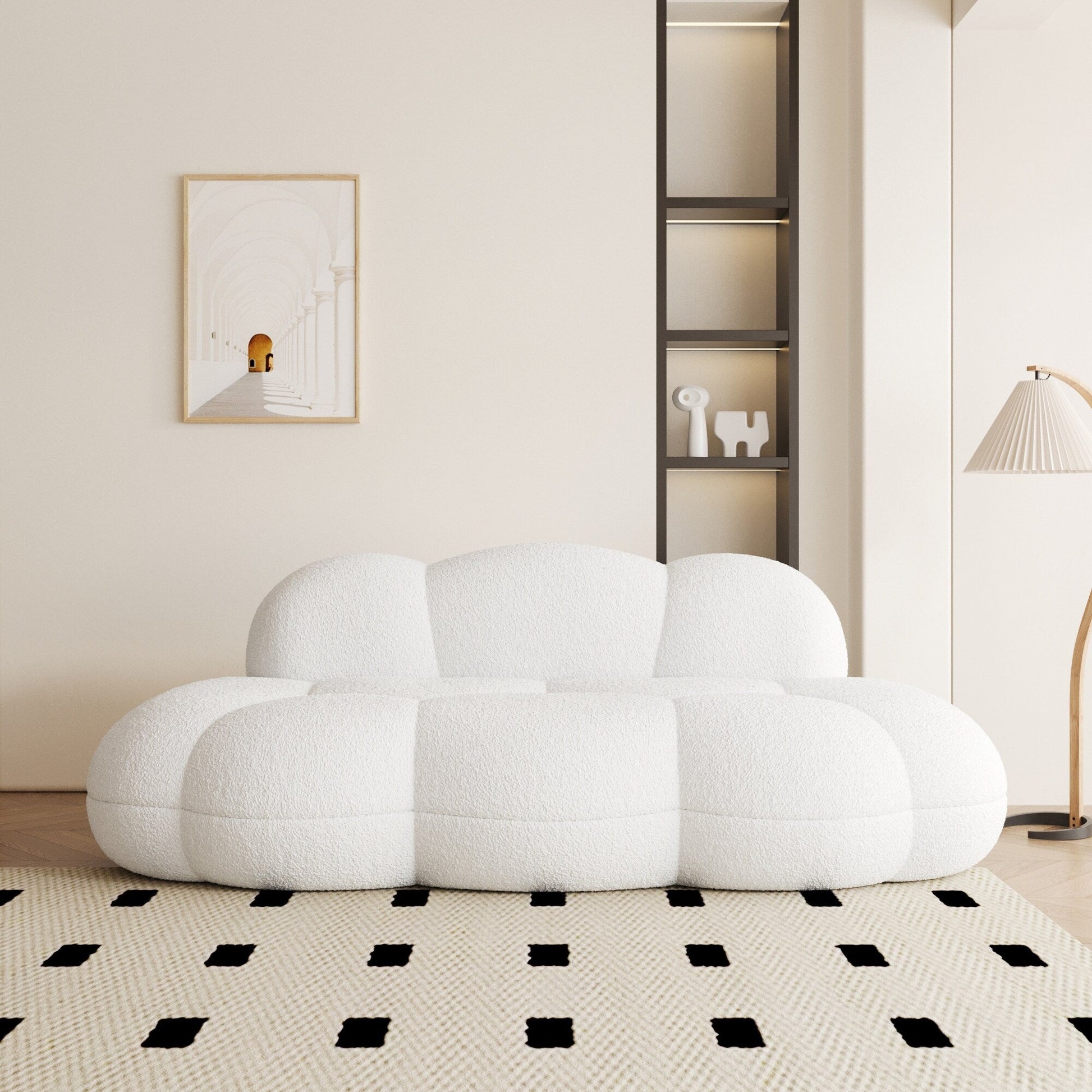 Ce canapé Cloud est un superbe meuble inspiré du design moderne du Moyen Âge. Il est livré emballé sous vide dans des cartons pour une manipulation aisée et aucun assemblage n'est requis. Grâce à ses dimensions compactes, ce canapé bouclé est idéal pour les petits espaces et peut accueillir confortablement jusqu'à deux personnes. Son rembourrage en mousse haute densité et son tissu bouclé résistant garantissent confort et durabilité.