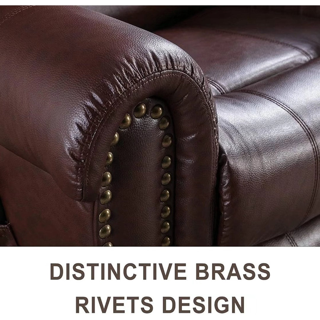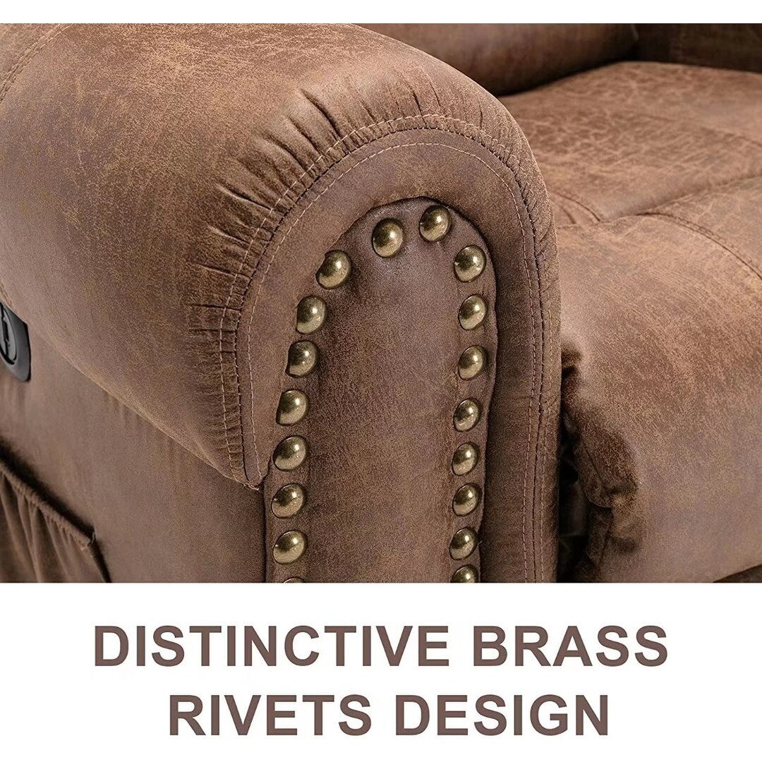Découvrez un confort et une détente ultimes avec notre fauteuil inclinable électrique en cuir Rivet, avec massage et port USB. Ce fauteuil inclinable électrique est doté d'un panneau de commande indépendant, permettant de se lever ou de s'allonger facilement d'une simple pression sur deux boutons. Le port USB permet de recharger facilement téléphones et tablettes. Doté de 8 points vibrants et d'une partie chauffante, ce fauteuil inclinable offre un confort et une détente incomparables. Choisissez parmi 5 modes de vibration pour répondre à vos besoins. Son design américain classique et ses délicats rivets en laiton ajoutent une touche d'élégance à n'importe quelle pièce. Deux poches latérales offrent un confort optimal, le rendant idéal pour différents styles de vie. Son revêtement respirant et son rembourrage généreux garantissent une assise confortable.