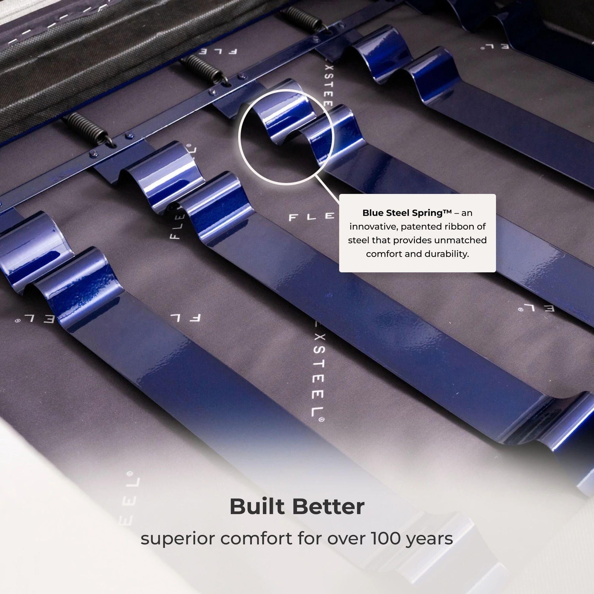 - Conçu pour durer avec notre système de ressorts Dual Flex — des rubans en acier robustes attachés à des bobines flexibles qui offrent une large gamme de mouvements et de durabilité