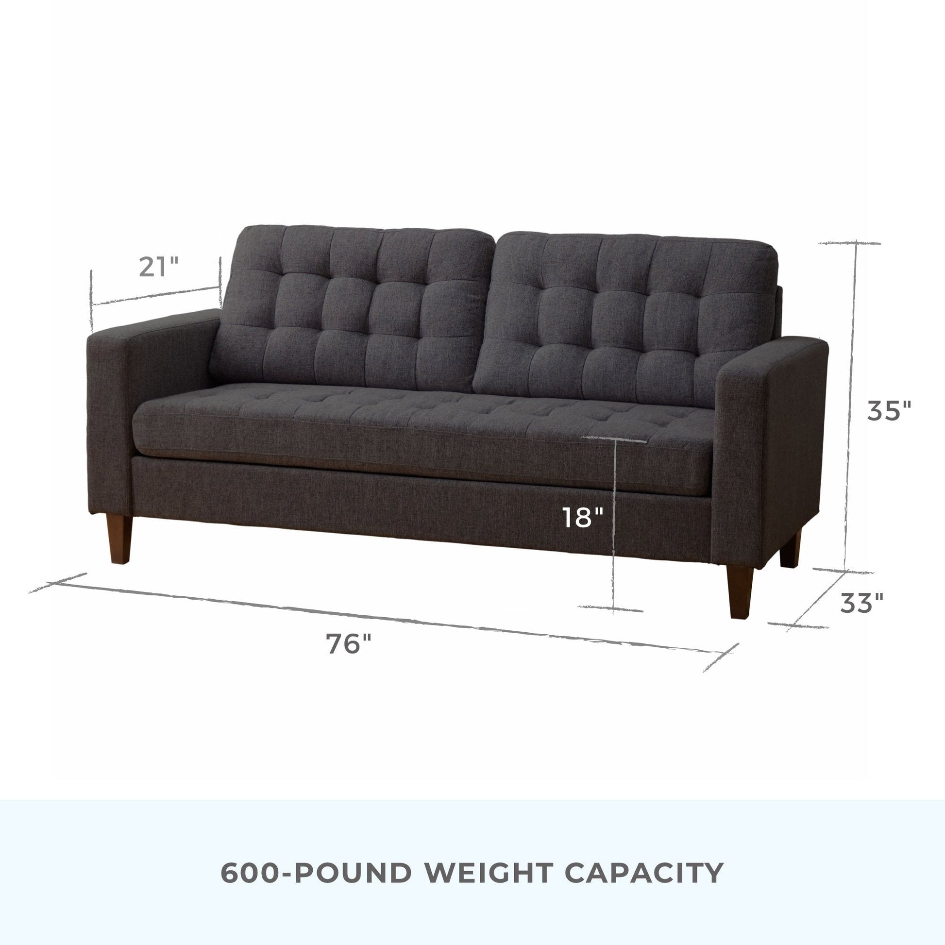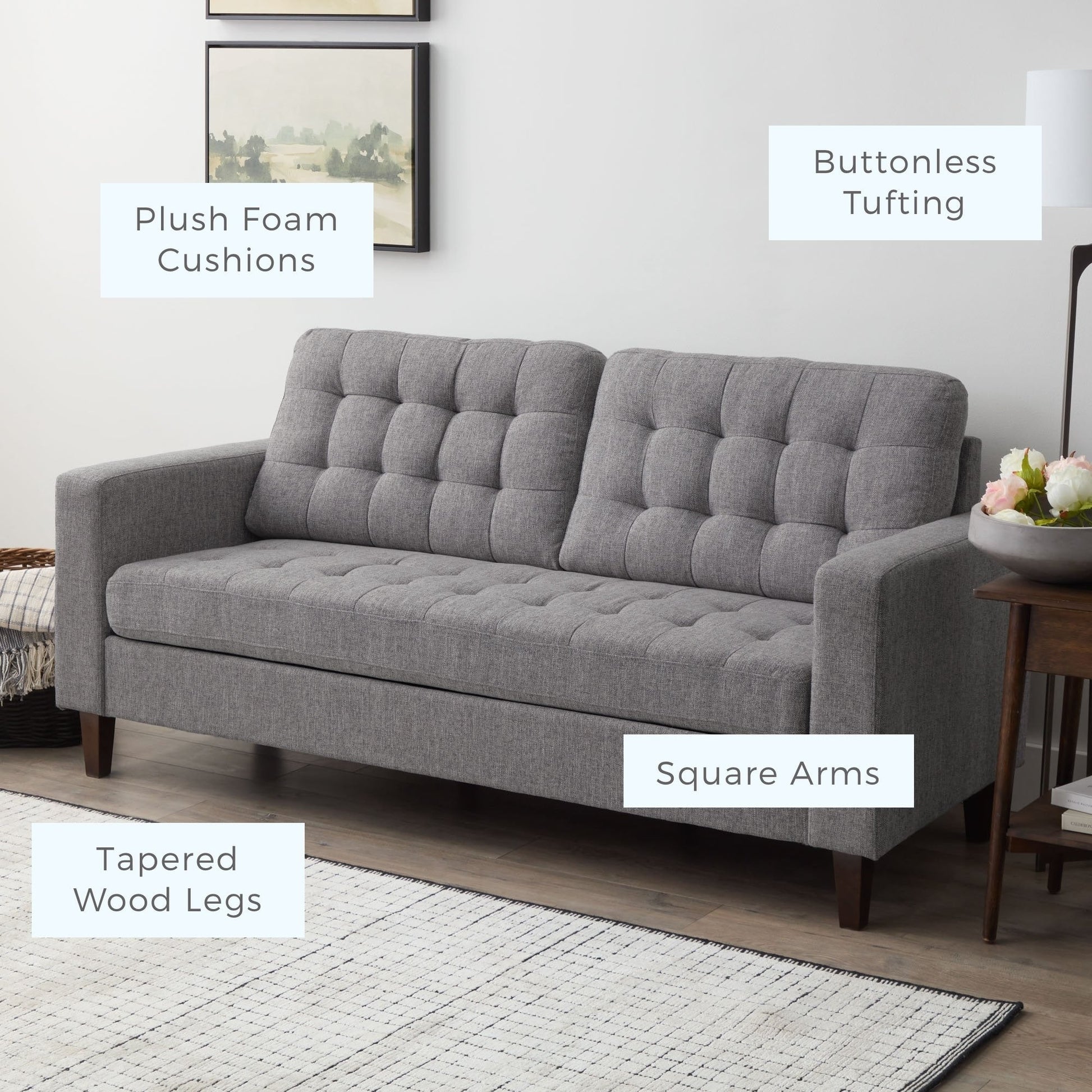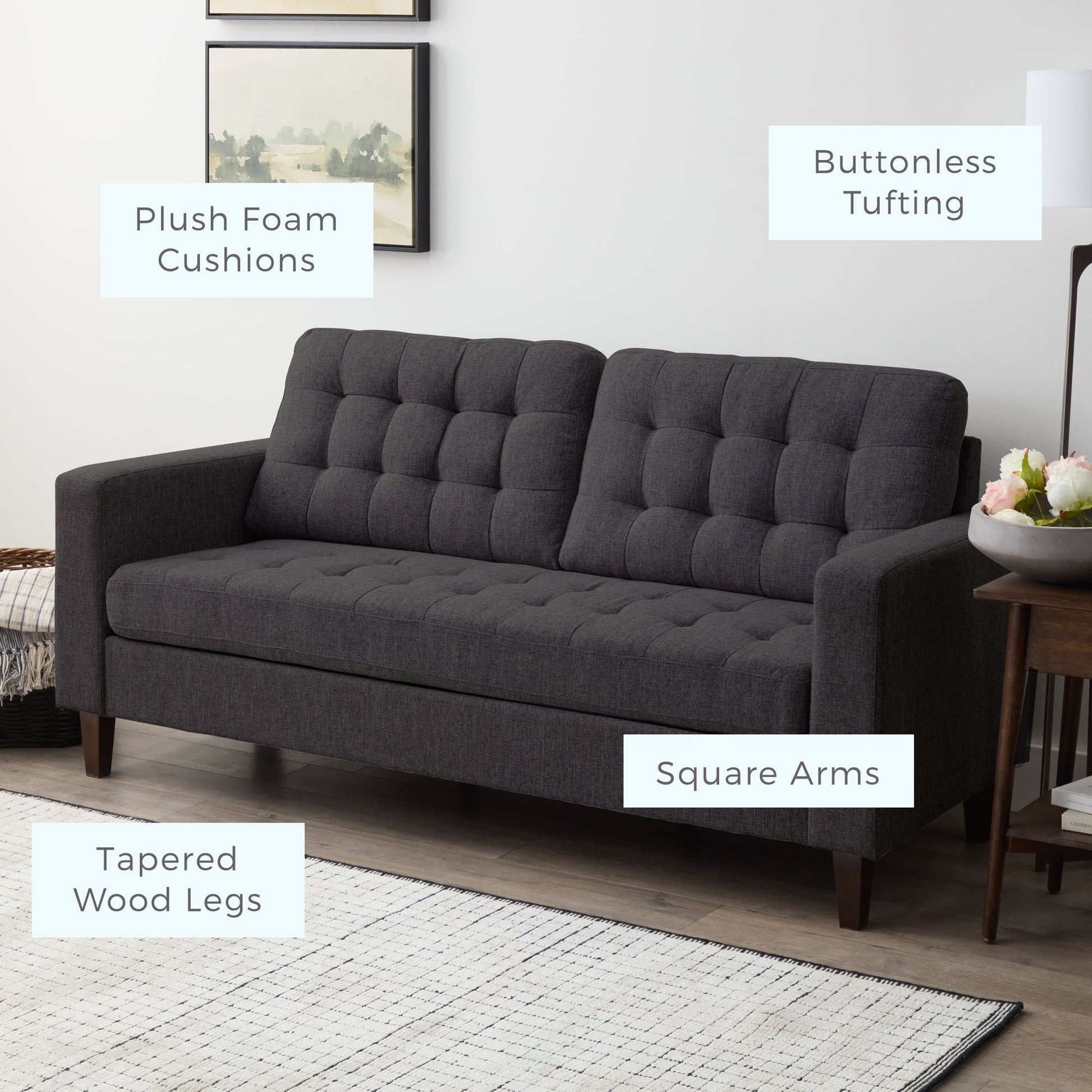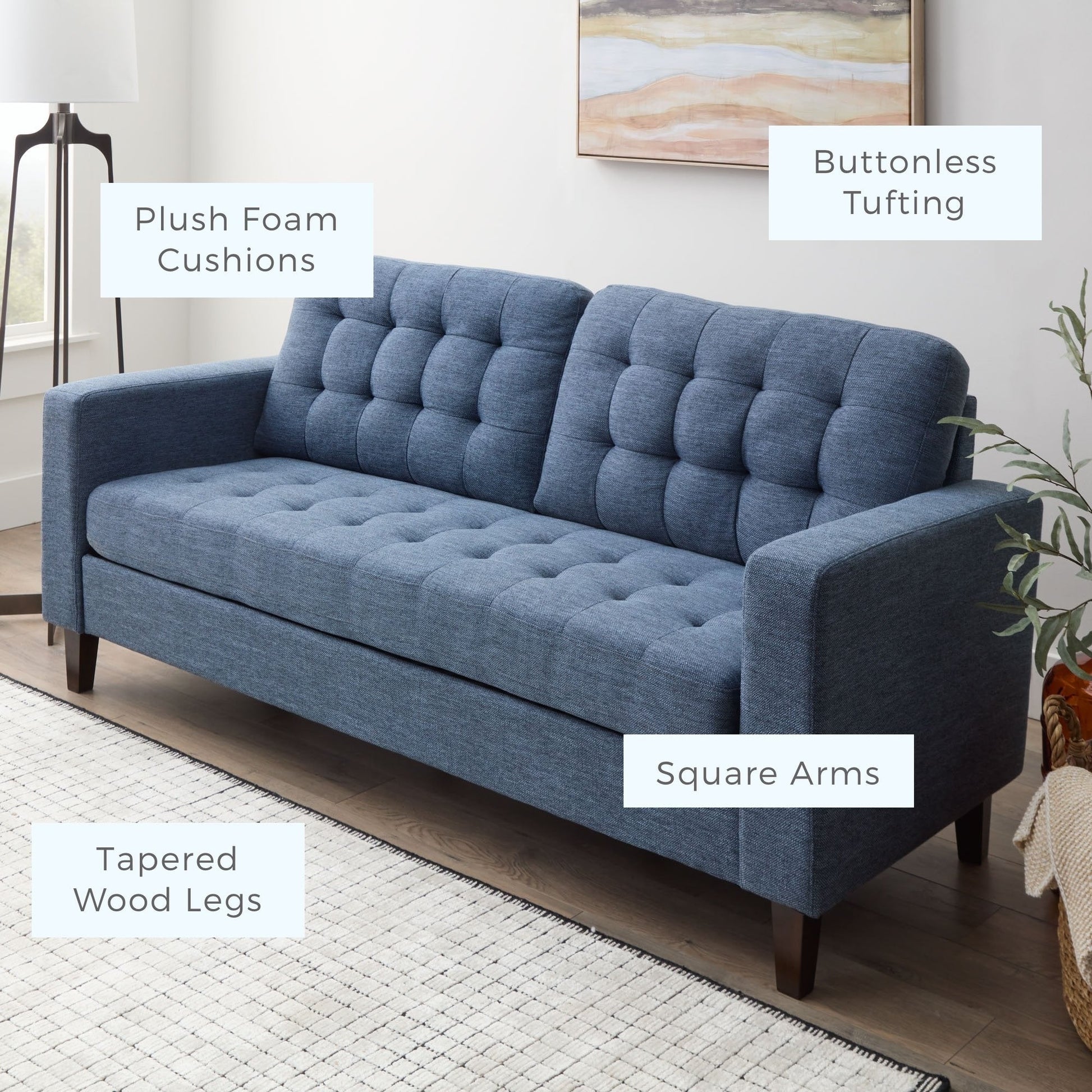 Sublimez votre espace avec le canapé rembourré Brookside Brynn à accoudoirs carrés, qui allie harmonieusement style contemporain et détails intemporels. Son élégant capitonnage sans boutons et ses accoudoirs carrés classiques apportent une touche de sophistication à votre salon, chambre ou bureau. Disponible en sept coloris et trois tissus, ce canapé compact vous permet de créer l'ambiance et le style que vous souhaitez à un prix abordable. Sa structure en bois durable, ses pieds robustes et ses épais coussins en mousse garantissent un confort et une qualité durables. Avec une capacité de charge de 272 kg, ce petit canapé est parfait pour les petits espaces, mesurant 23,4 m (L) x 10,1 m (P) x 10,7 m (H). De plus, son montage est un jeu d'enfant grâce à toute la quincaillerie incluse et facilement rangée sous le canapé. Complétez votre ensemble en associant ce canapé élégant à la causeuse assortie et bénéficiez d'une garantie limitée d'un an offerte.