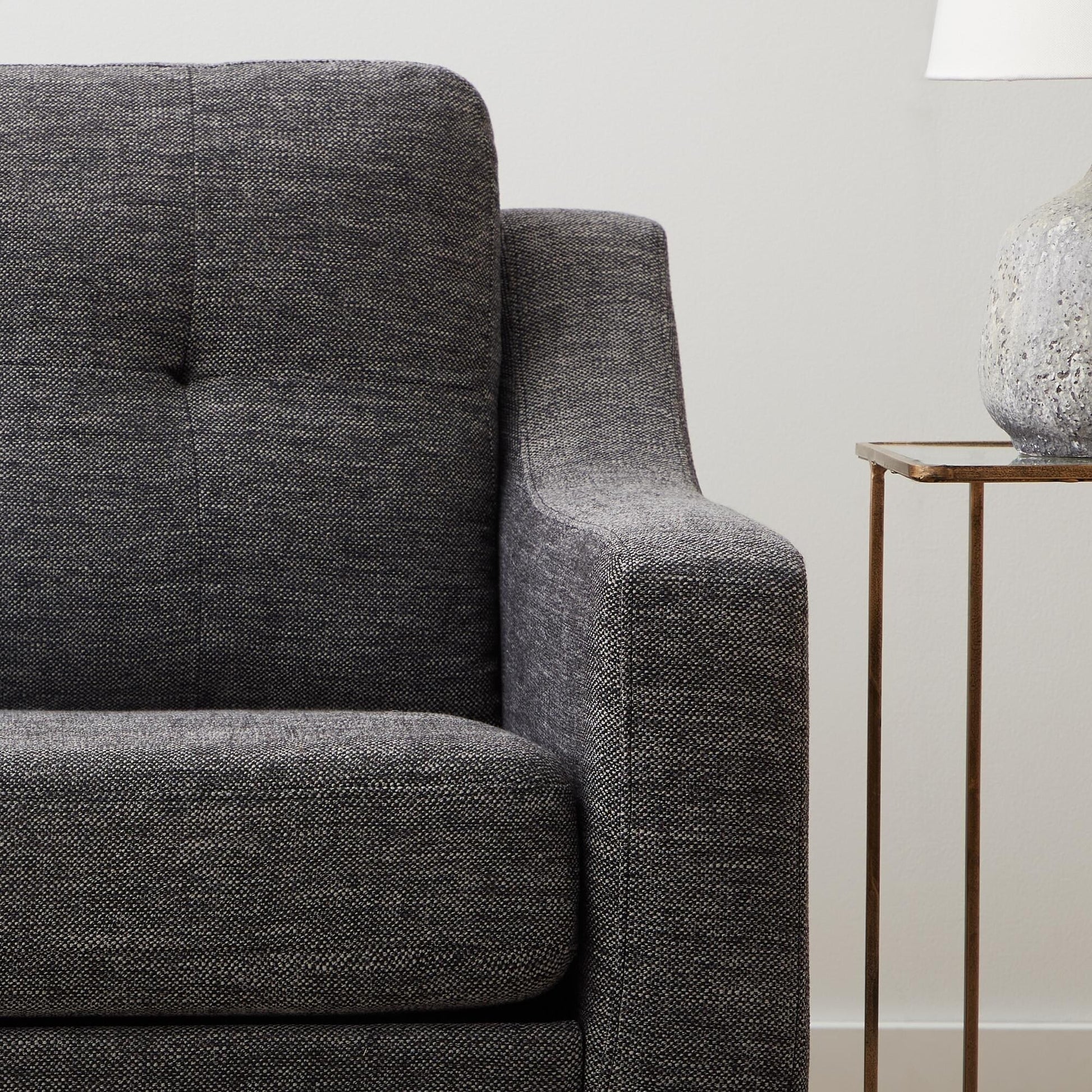 Embellissez votre espace avec le style classique et la touche moderne du canapé rembourré 3 places Brookside Ellen. Ce canapé compact, idéal pour les petits espaces, est doté d'accoudoirs bas et arrondis avec un capitonnage carré et de pieds contemporains qui s'harmonisent parfaitement avec un mobilier traditionnel ou moderne du milieu du siècle. Sa structure en bois massif robuste et ses pieds fuselés robustes sont surmontés de coussins épais et confortables pour une ambiance confortable et relaxante qui ravira toute la famille. Disponible en similicuir doux ou en tissu confortable effet lin, ce canapé rembourré est incroyablement durable, facile d'entretien et polyvalent. De plus, comme tous les meubles Brookside, ce canapé livré en carton est livré directement chez vous avec toute la quincaillerie nécessaire pour un assemblage facile et sans outils.