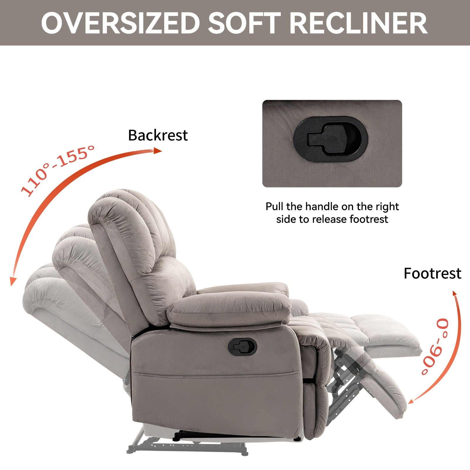 Fauteuil inclinable manuel surdimensionné marron avec inclinaison à 155°, assemblage facile et design généreux pour votre salon