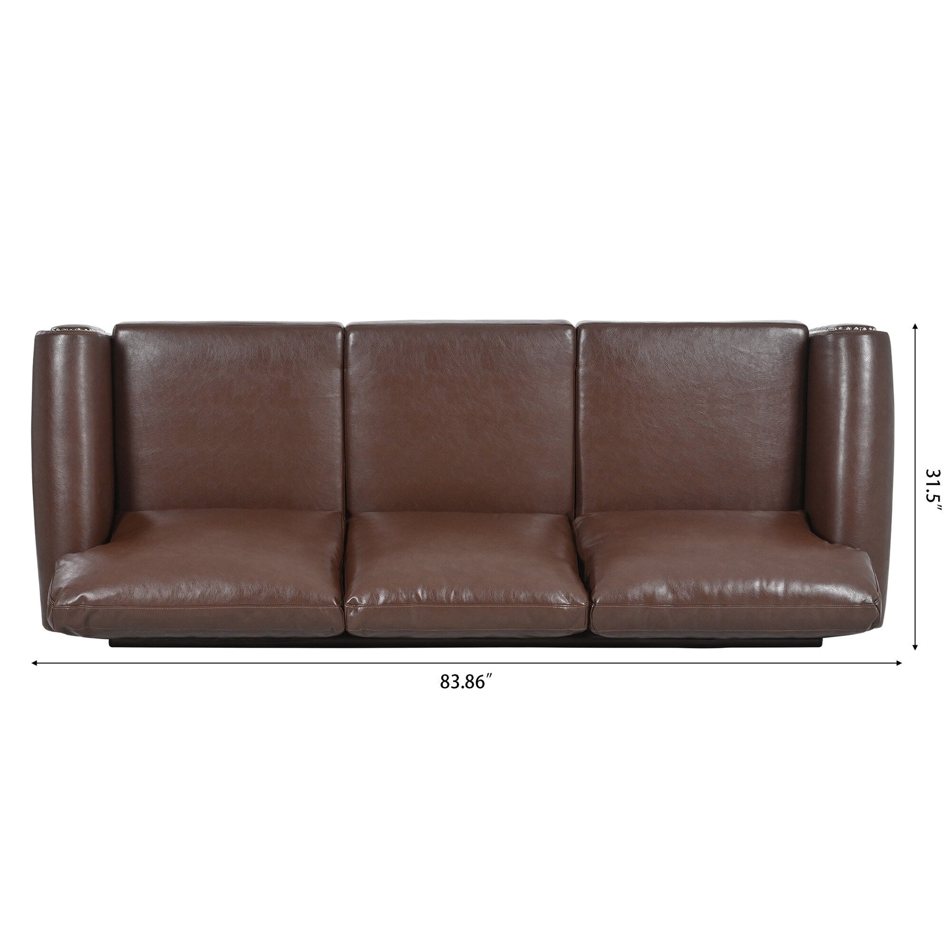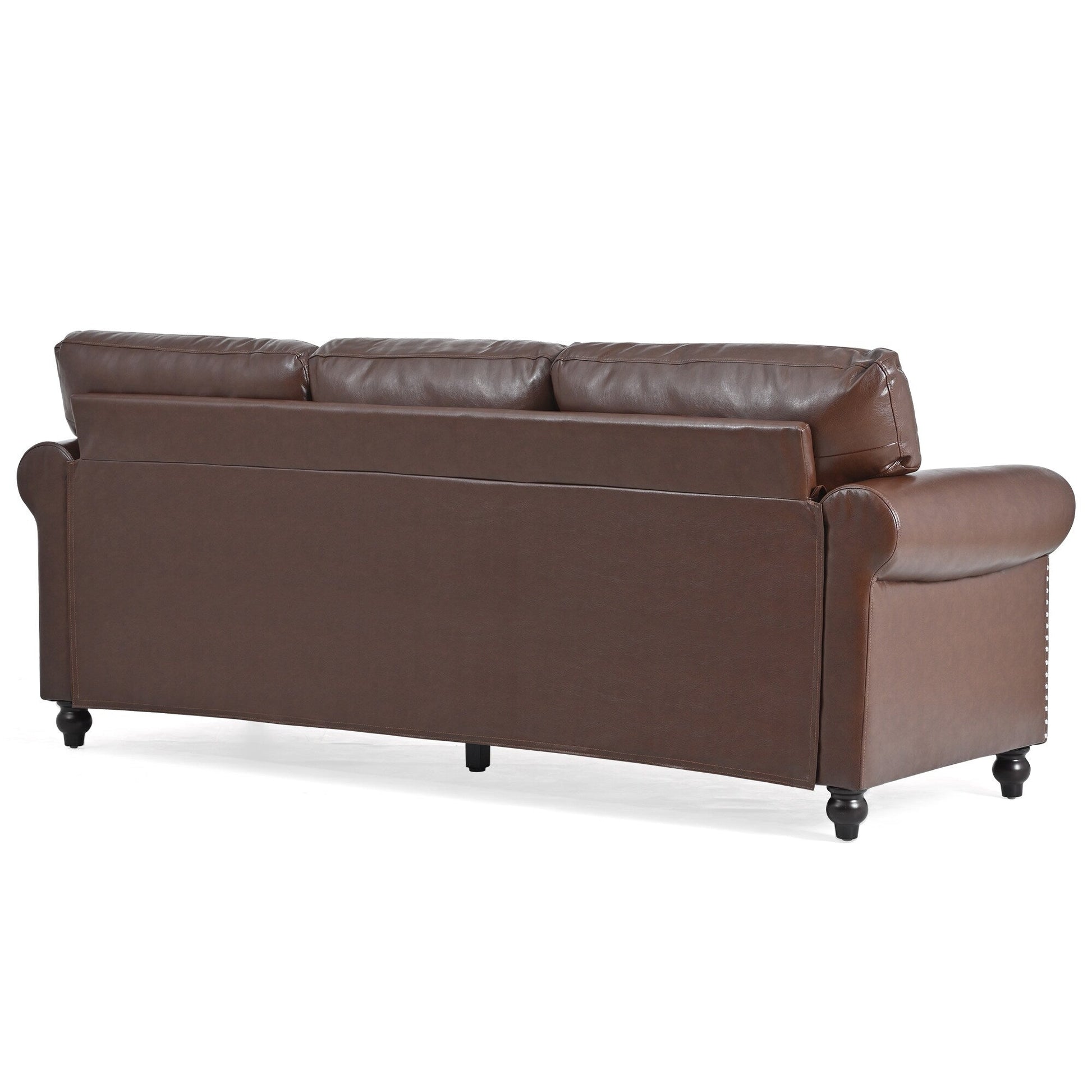 Canapé 3 places rembourré en Pu marron 83,86 avec clous et pieds en bouleau pour le salon