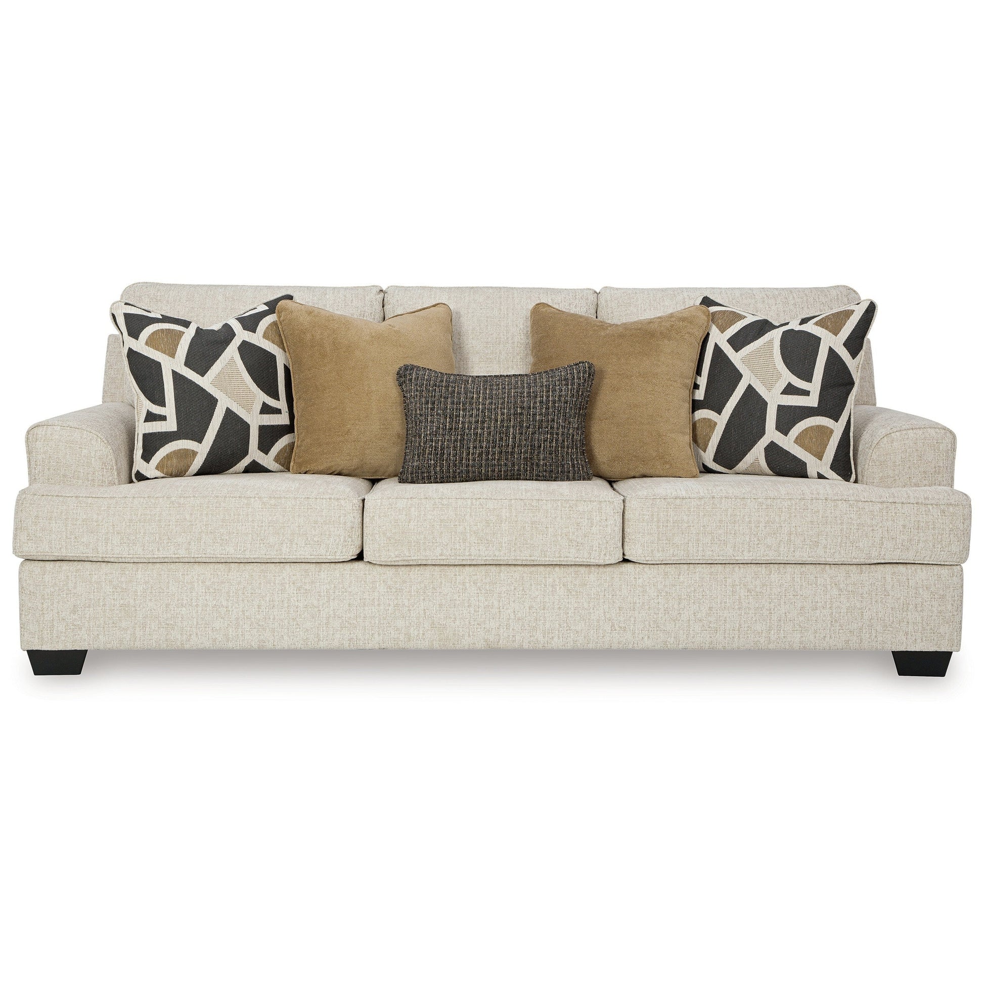 Canapé Burgess, polyester beige quartz, 5 coussins décoratifs, 97 pouces
