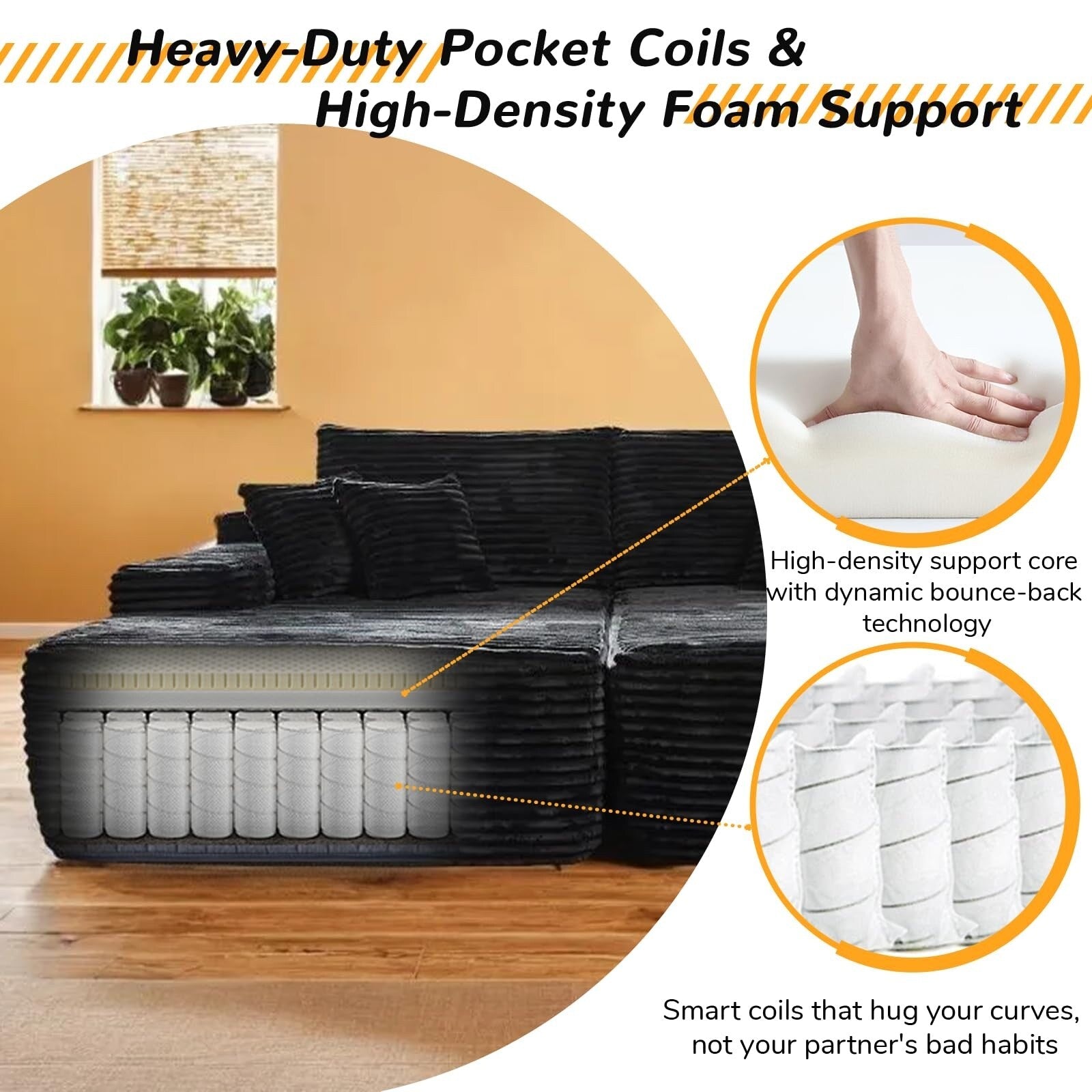 ÉPONGE ET SAC À RESSORTS : Au lieu d'un cadre en bois traditionnel, le canapé est garni d'une éponge haute densité et d'un sac à ressorts. L'intérieur de l'éponge est moulé d'une seule pièce, procurant une sensation d'assise moelleuse et confortable. En position assise, vous ressentez la répartition uniforme du poids. Le sac à ressorts absorbe les chocs, prolongeant ainsi la durée de vie du fauteuil caramel.