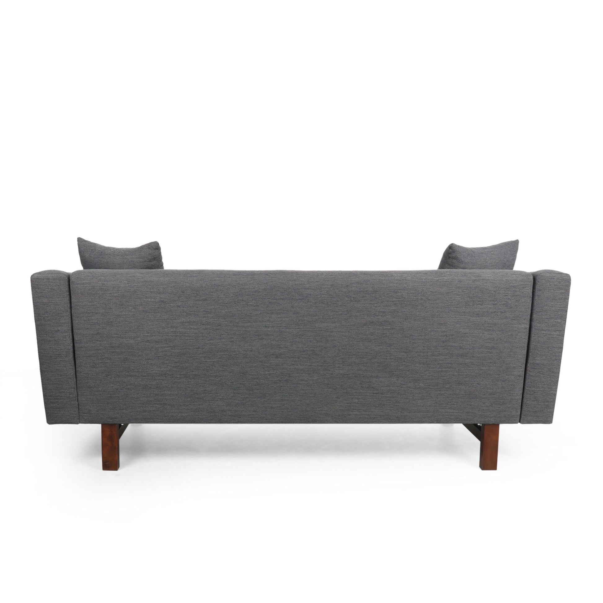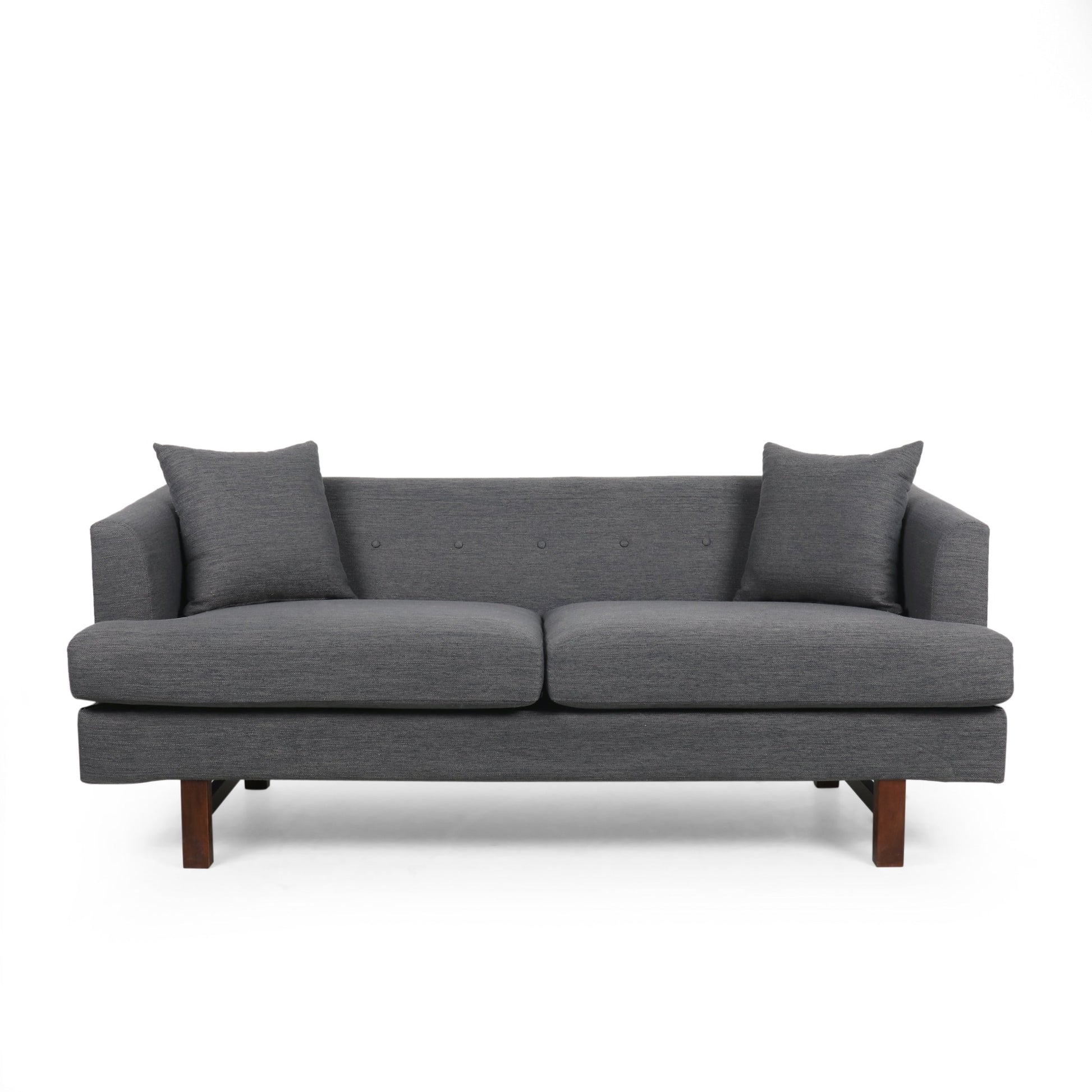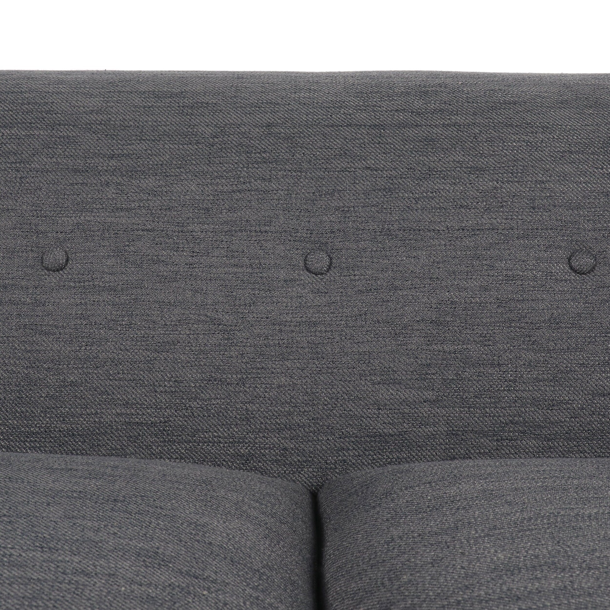 Canapé 3 places capitonné à boutons, couleur charbon, 73,5 cm, avec pieds en bois et coussins pour le salon