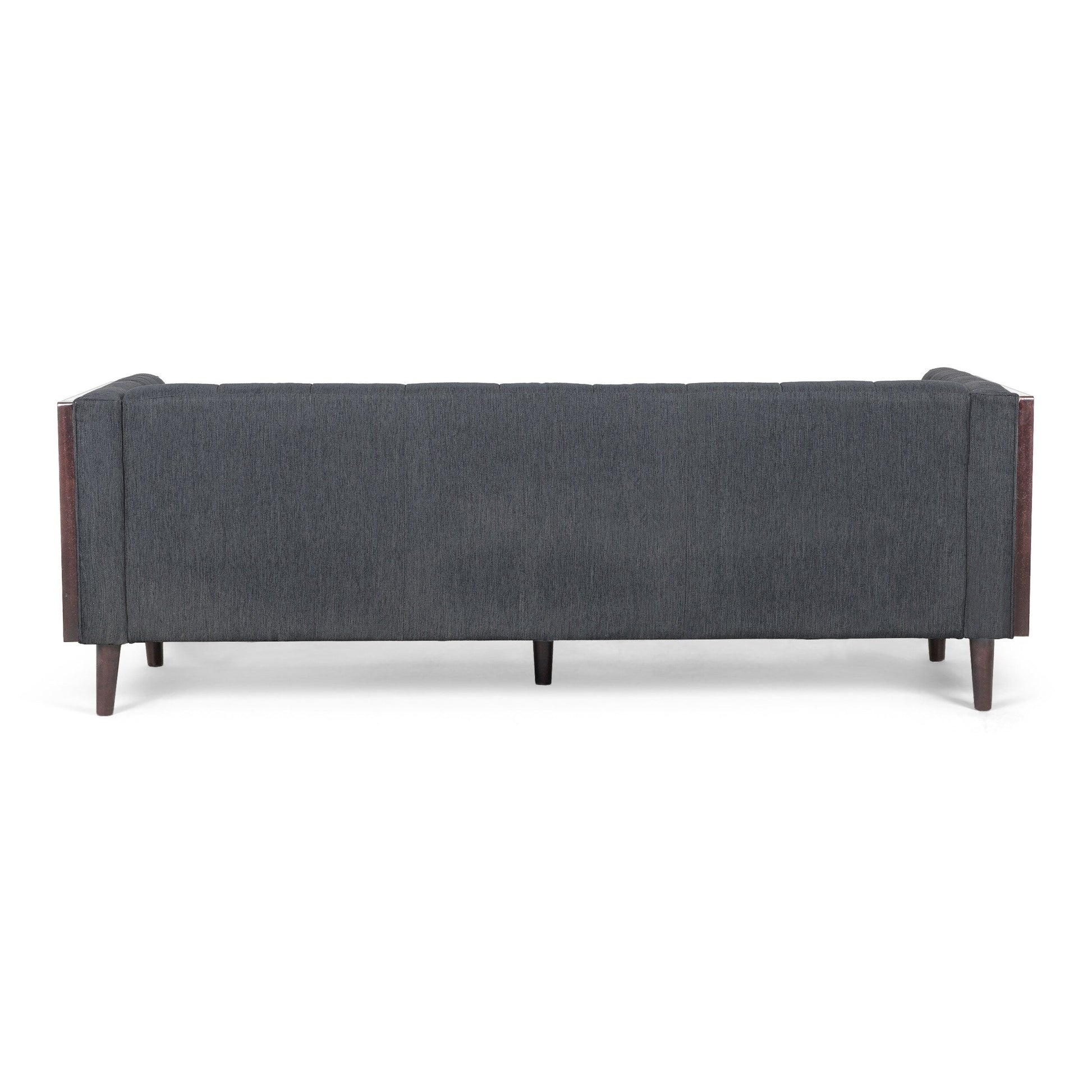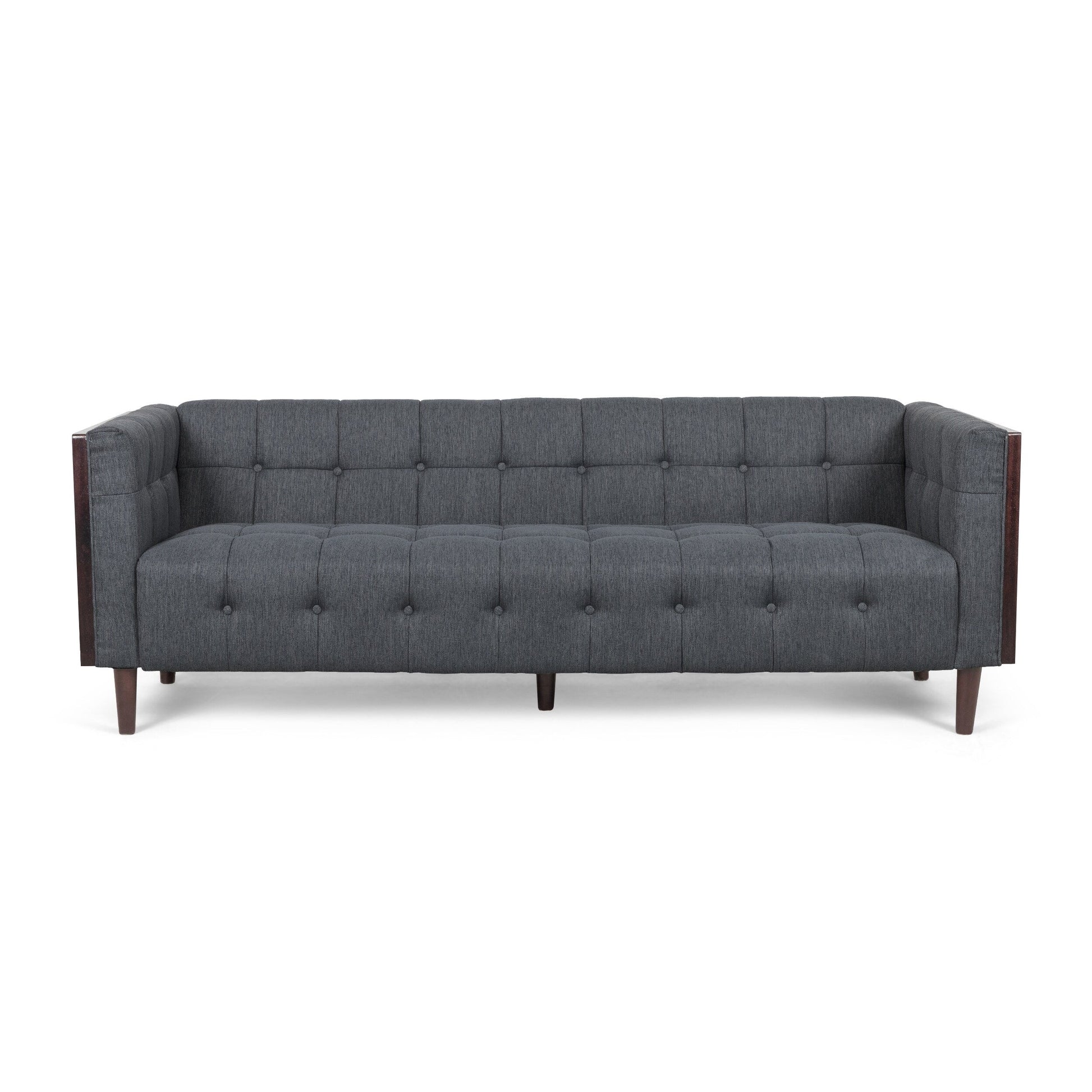Canapé 3 places capitonné à boutons anthracite avec pieds en bois